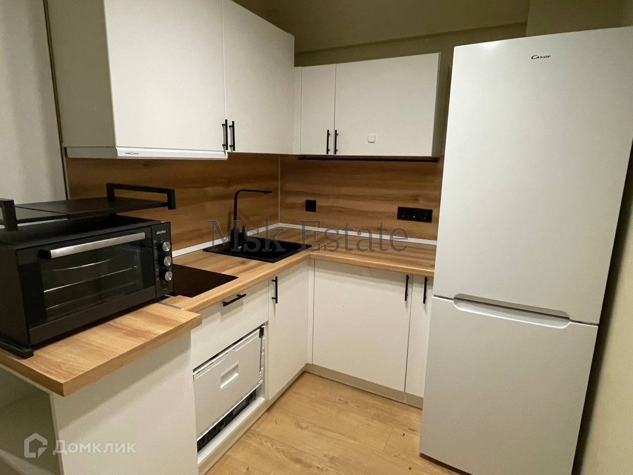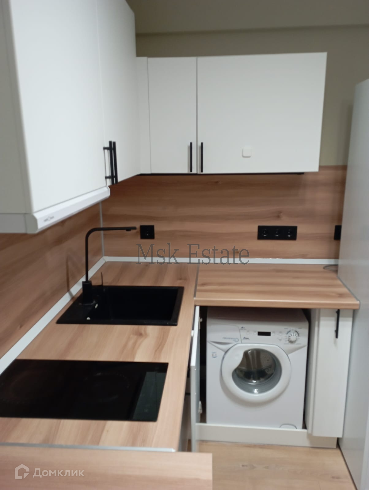 Полностью меблирована всем необходимым- кухонный гарнитур, холодильник, вытяжка, стиральная машина, плита, кровать.