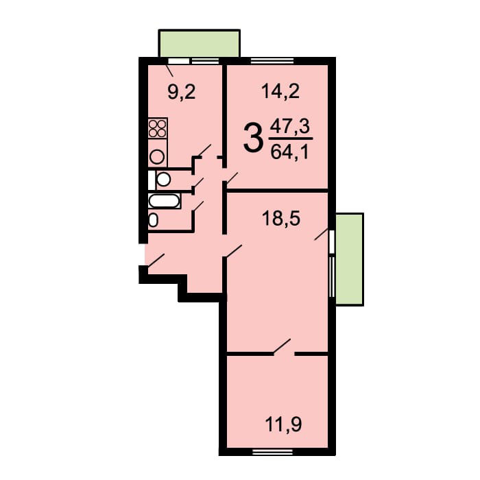 Общая площадь 64.1 м2