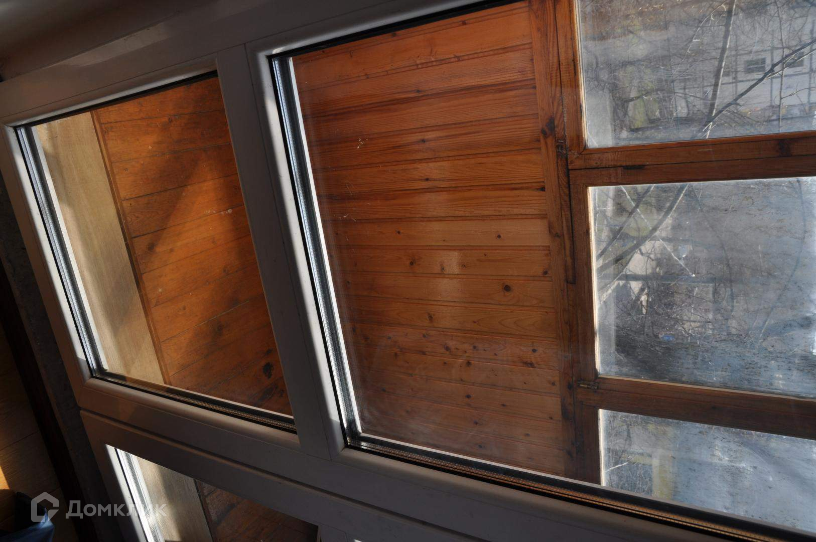 Балкон застеклен и обшит вагонкой.