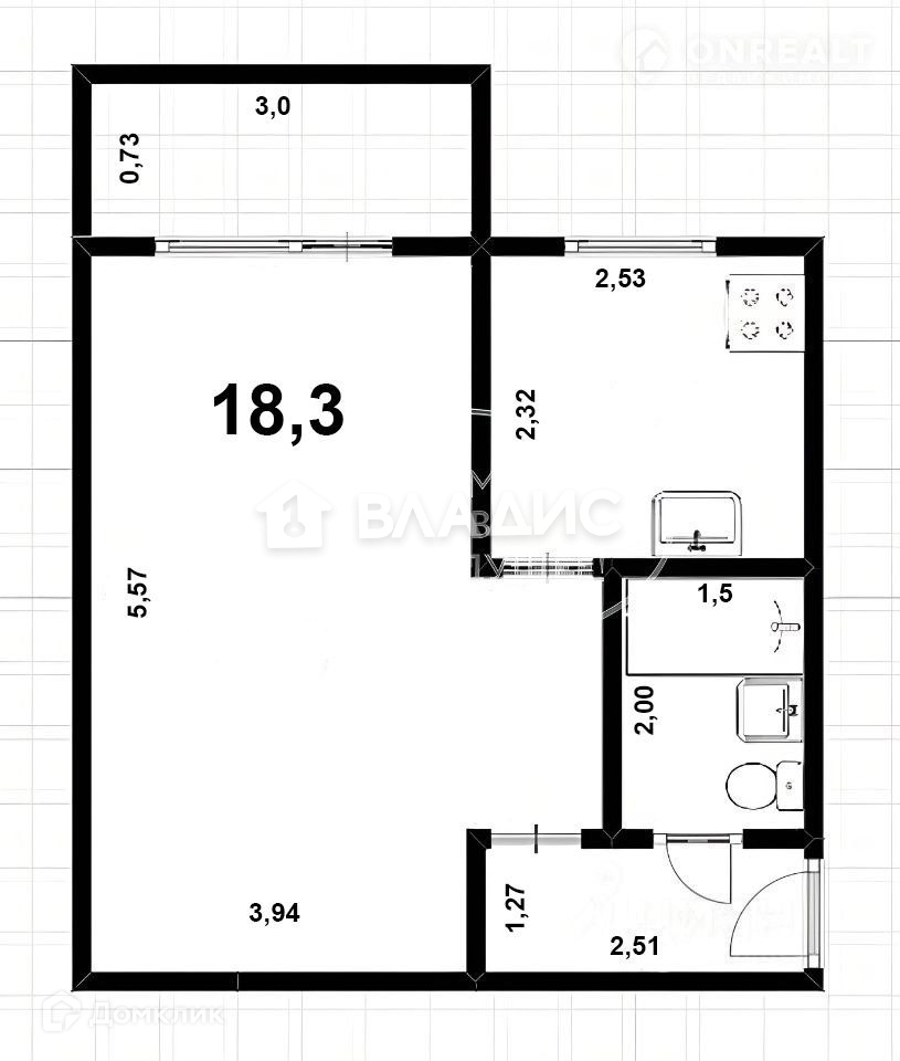 Общая площадь 30.3 м2