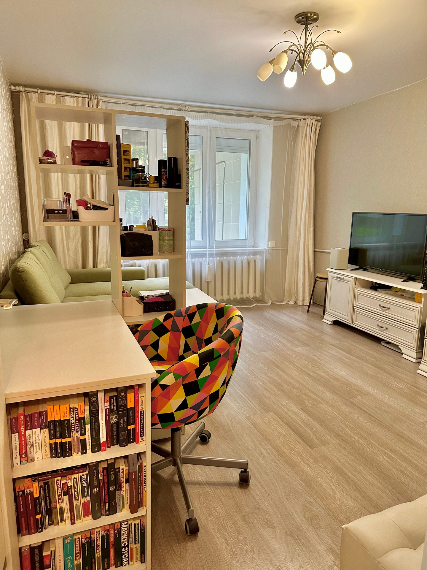 Продается однокомнатная квартира! Очень уютная, с евро ремонтом. Квартира обставлена итальянской и шведской мебелью (можем оставить все, если вам понадобится), проведен вай-фай и кабель спутникового телевидения. Натяжные потолки, ламинат в спальне и плитка на кухне с ванной. Первый этаж, окна в зелёный дворик. В доме был проведен капитальный ремонт.