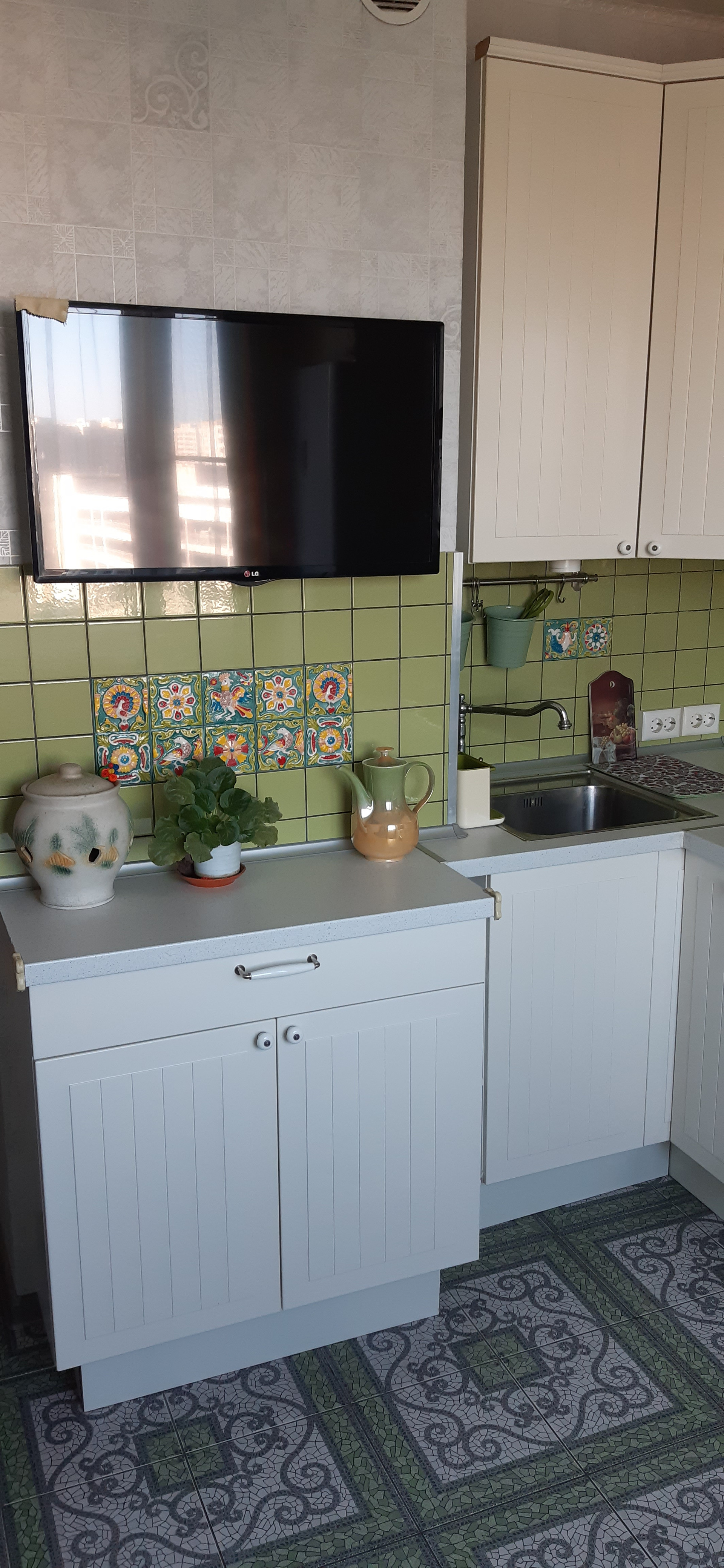 В квартире красивый оригинальный ремонт. На кухне настоящие ярославские изразцы и итальянская плитка, гарнитур икея (остается), сантехника Италия и Германия.