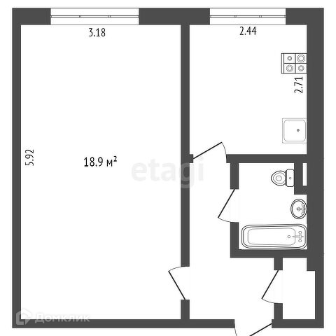 Общая площадь 32.6 м2