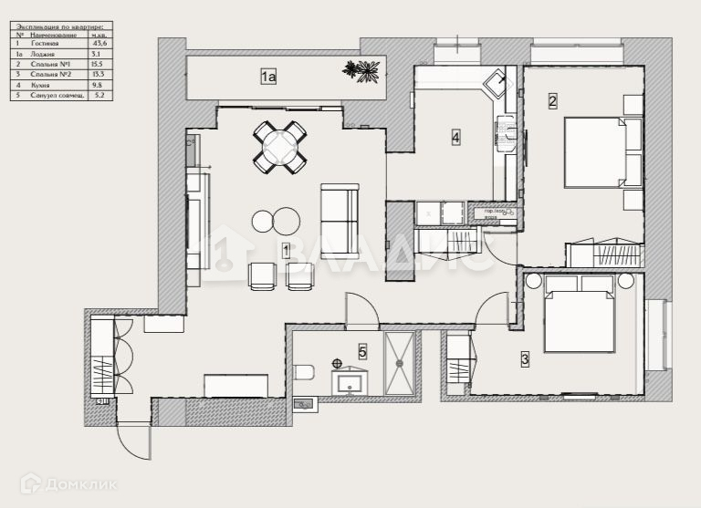 Общая площадь 91 м2