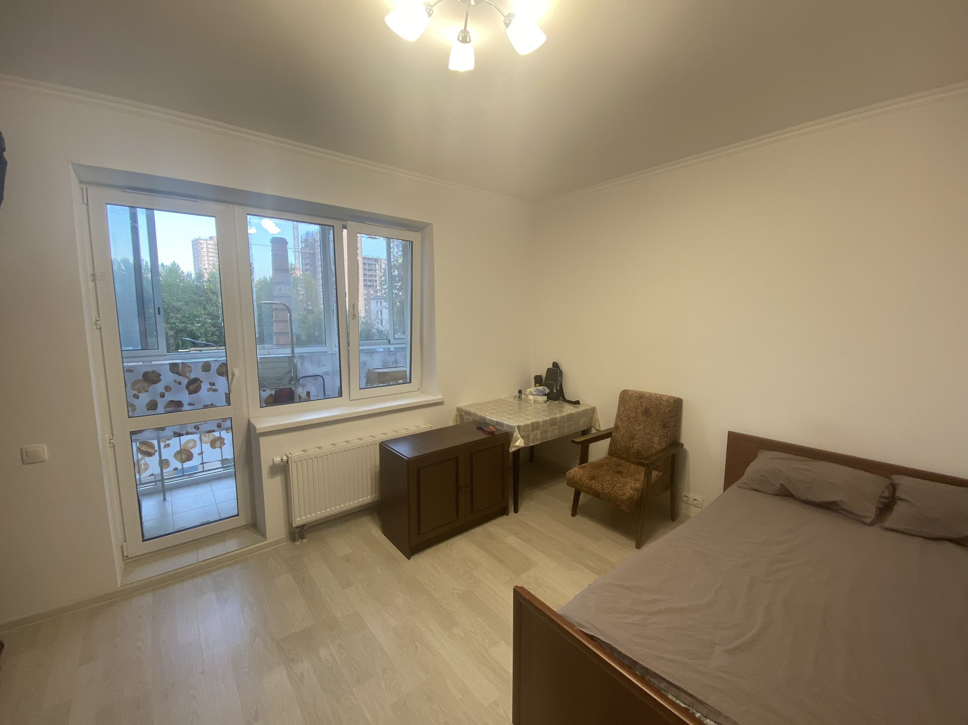 Лоджия 4 кв.м. по всей ширине комнаты.