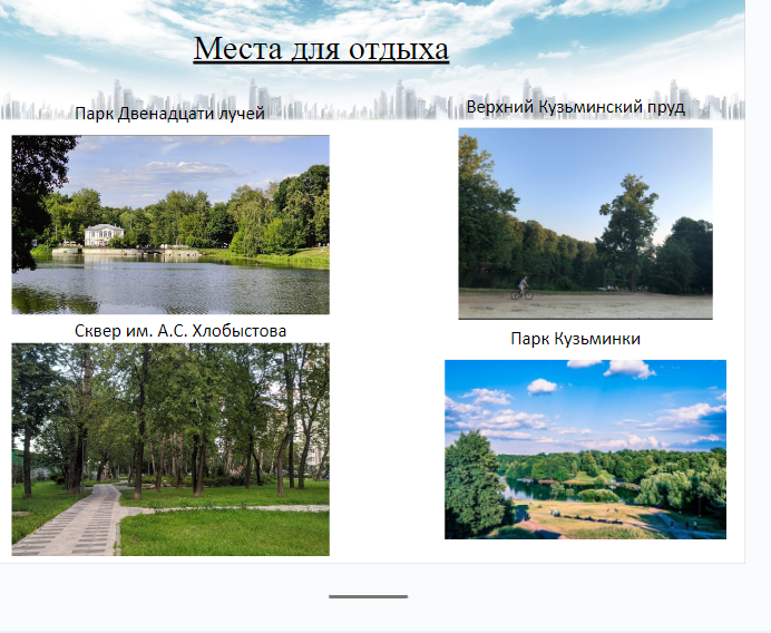 очень много мест для прогулок и отдыха ( на фото)