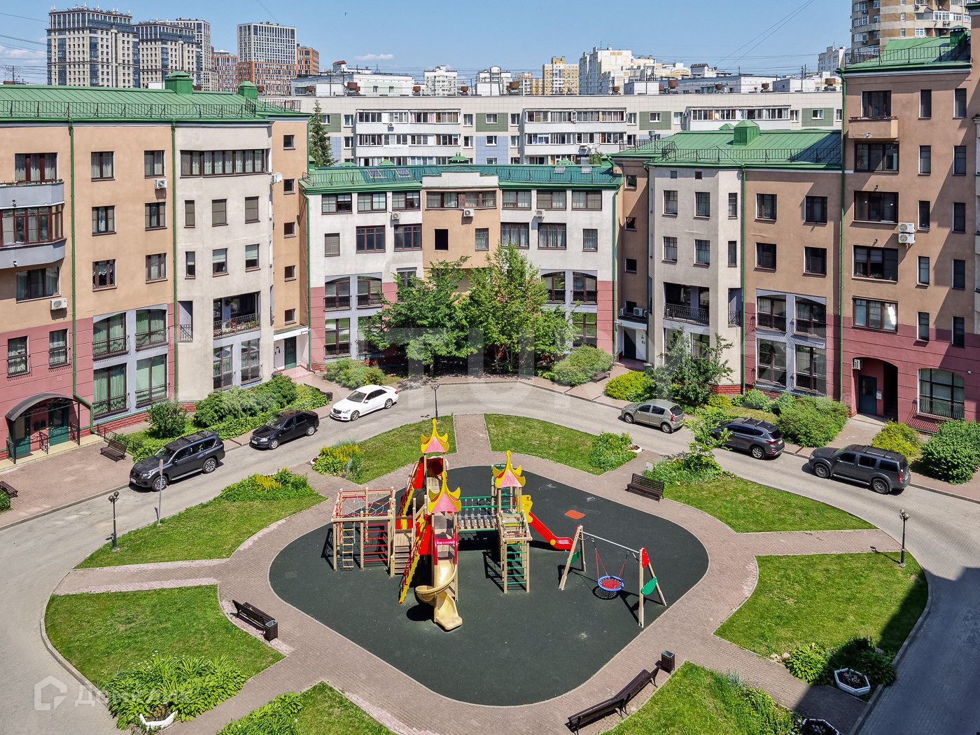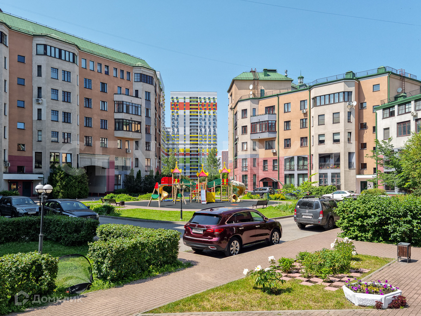 Зеленый, тихий оазис рядом с м. Молодежная. Большая, ухоженная территория, с детскими площадками, клумбами и местами для отдыха, территория строго охраняемая.