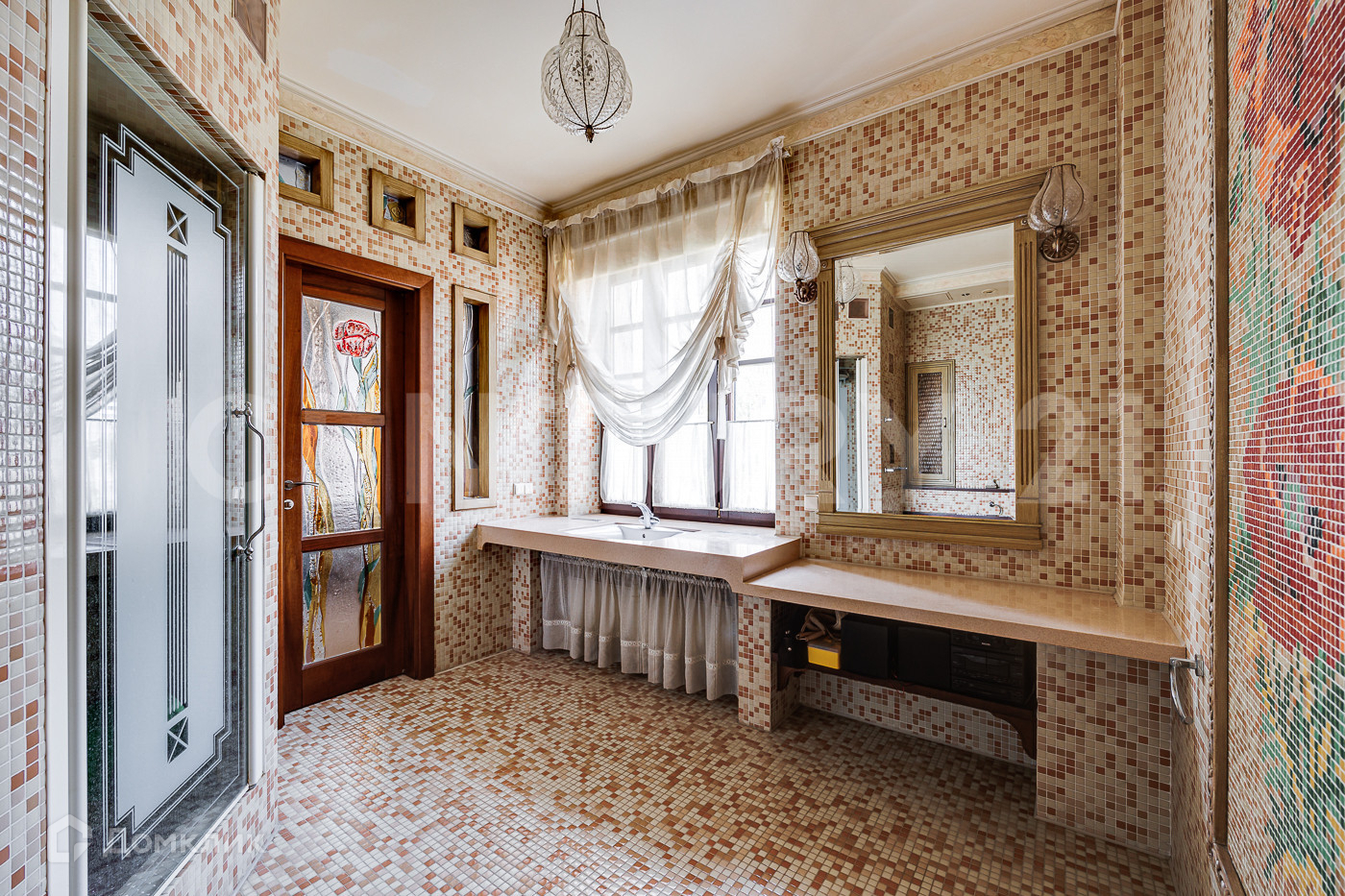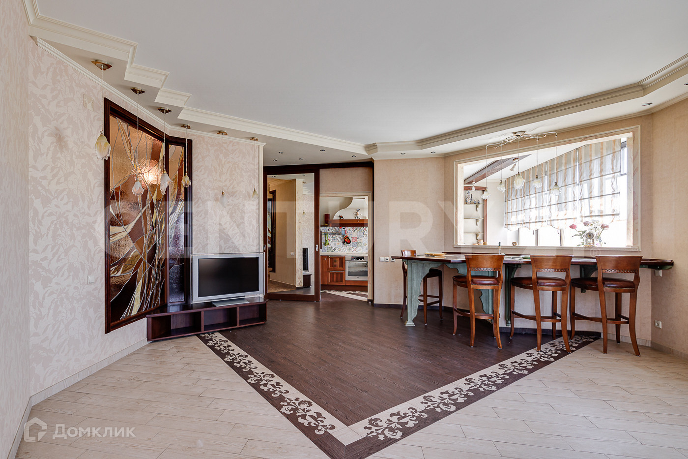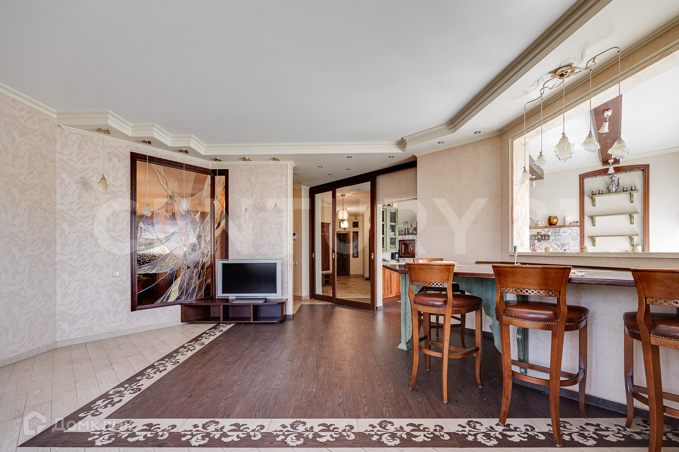 Квартира имеет удобную планировку: большую кухня-гостиную, в которой имеется все и даже холодильная комната, просторный функциональный холл, две спальни с санузлами и удобно расположенная между ними гардеробная комната. Вся квартира украшена витражами по эскизам известного художника!