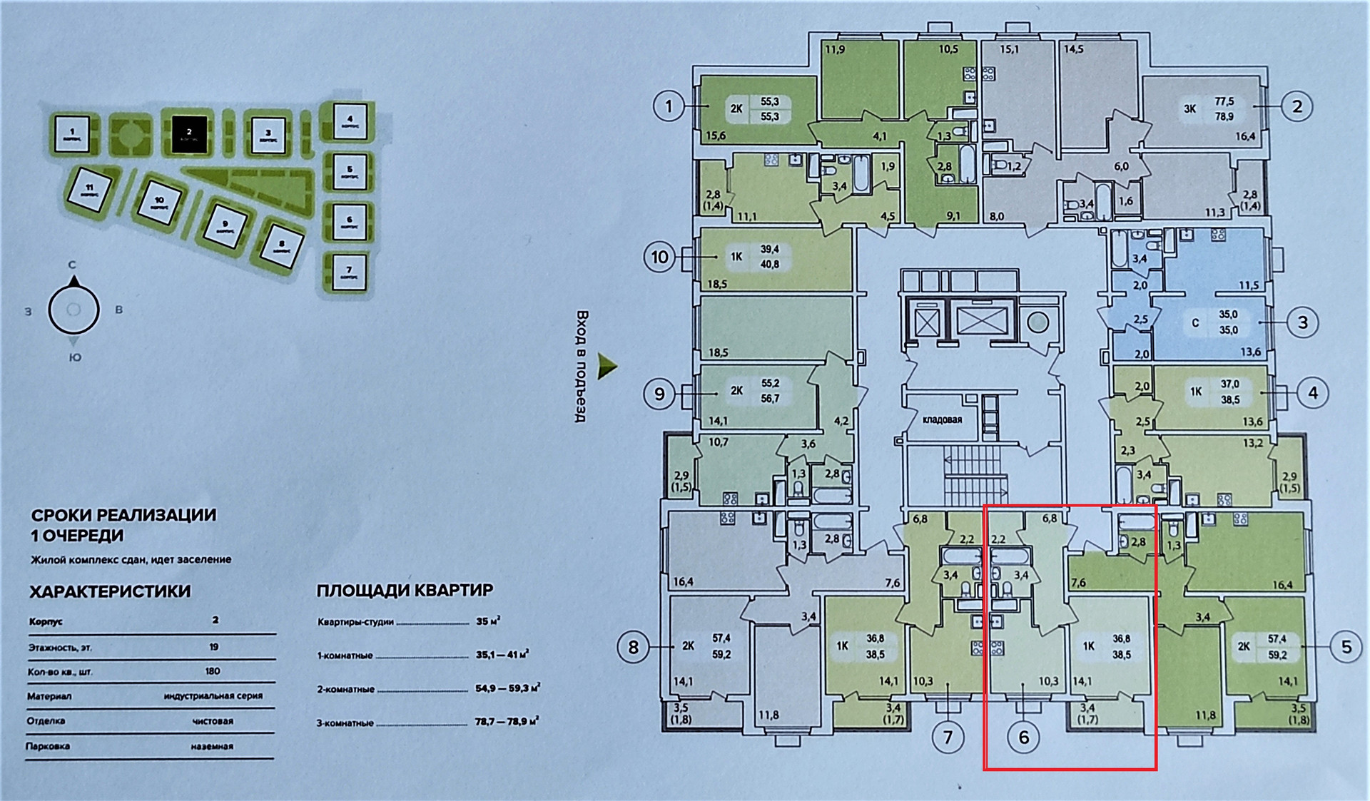 Общая площадь 38.5 м2
