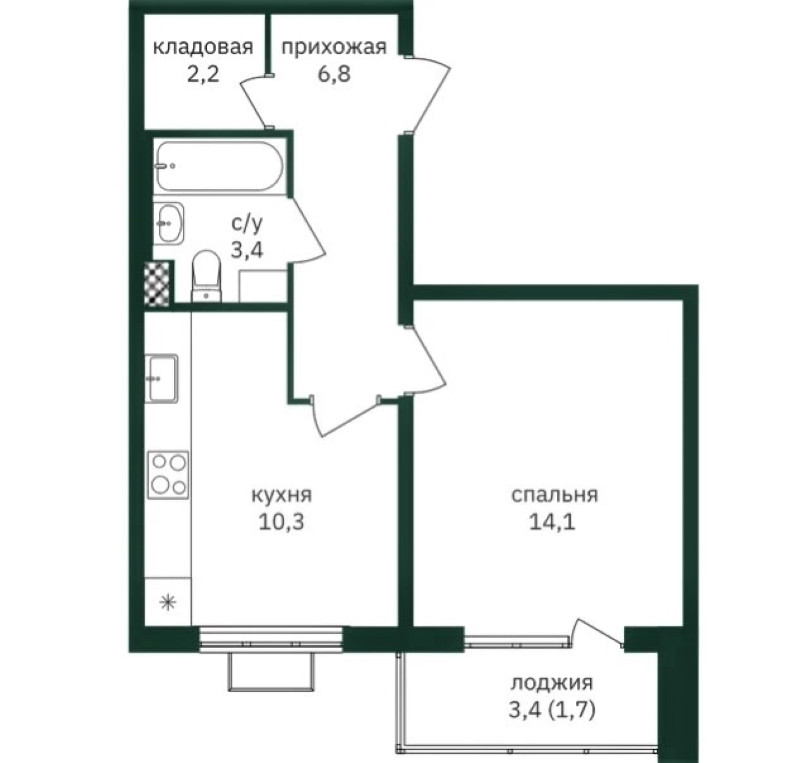 Площадь кухни 10.3 м2
