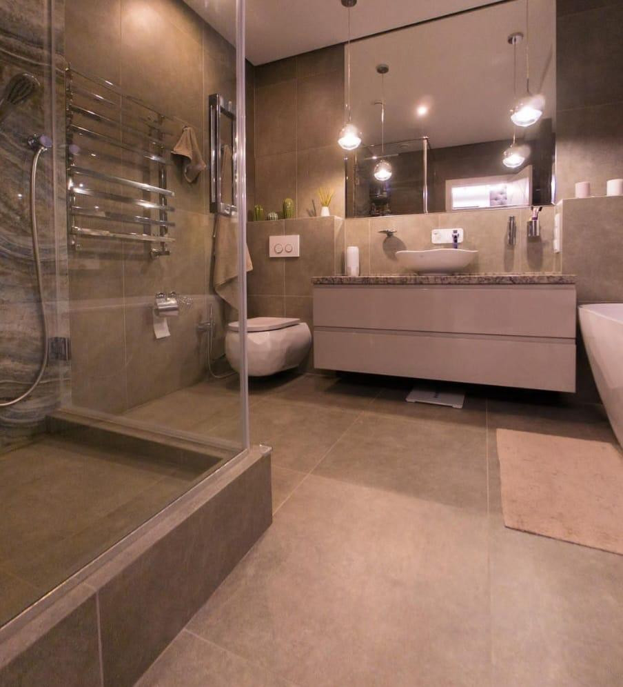Ванна оснащена бойлером нагрева воды (на 70 л) на период отключения горячей воды в летний период, системой защиты от протечек (при затоплении система сама перекрывает воду), гигиеническим душем, теплым полом, системой вентиляции, увеличительным зеркалом с подсветкой Beuer, душевая с системой тропический душ.