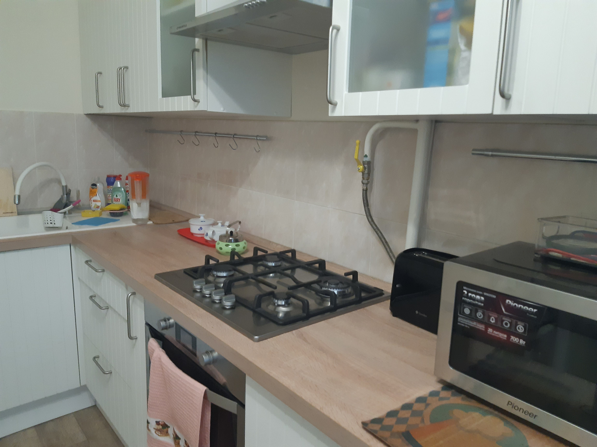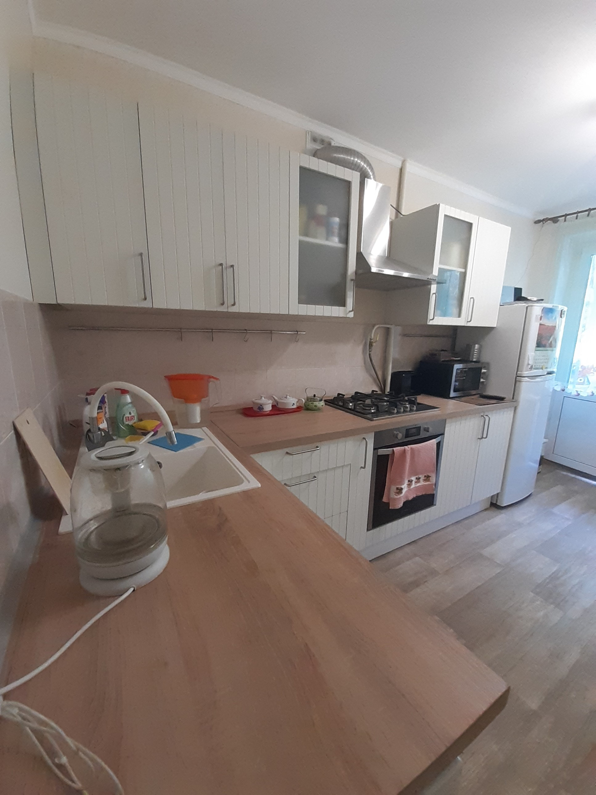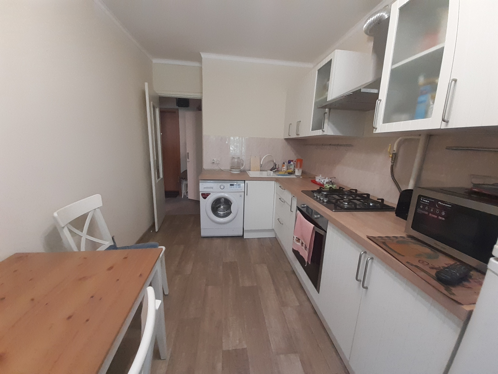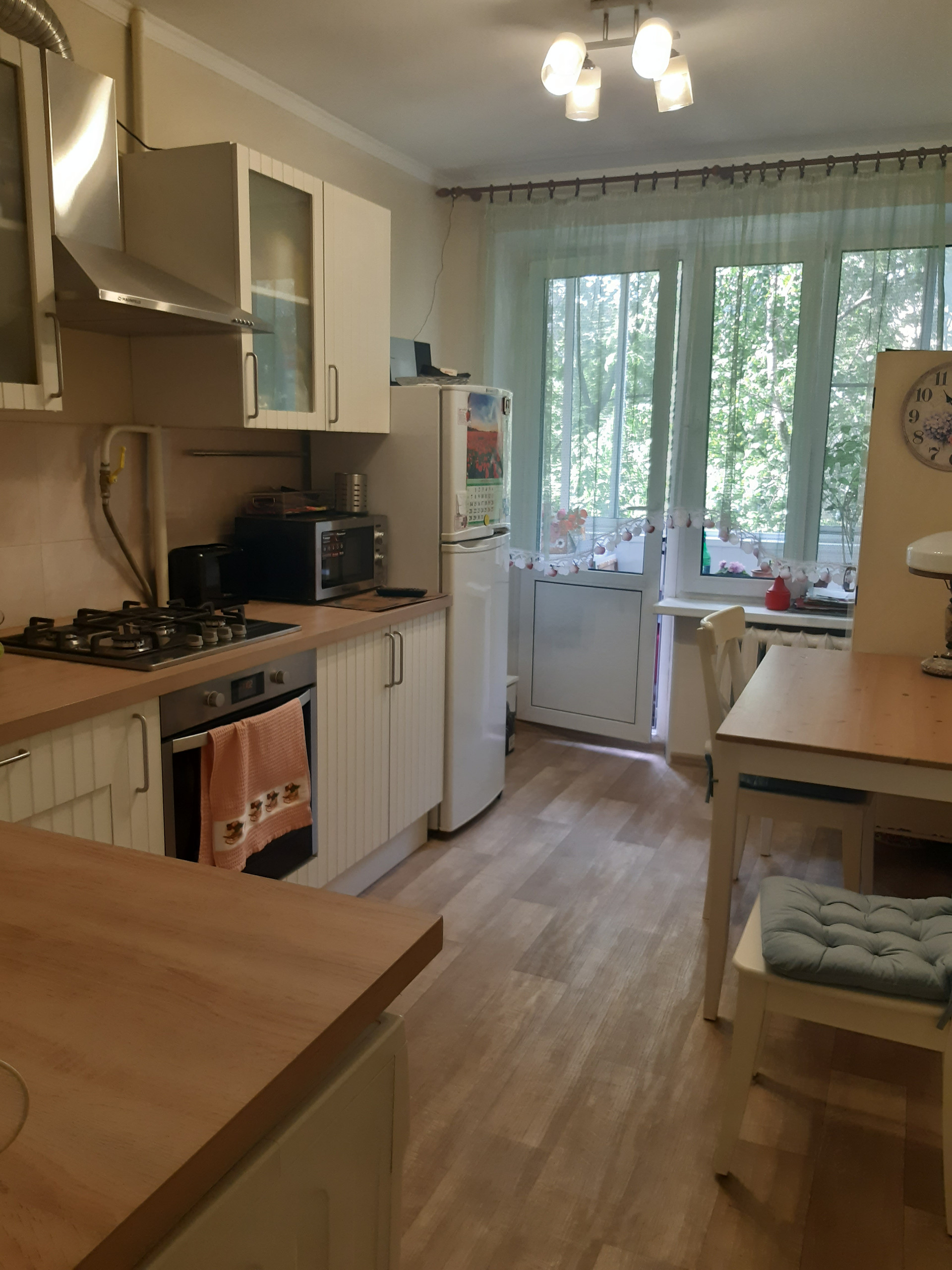 Встроенная кухня и часть бытовой техники останется бонусом новому собственнику.