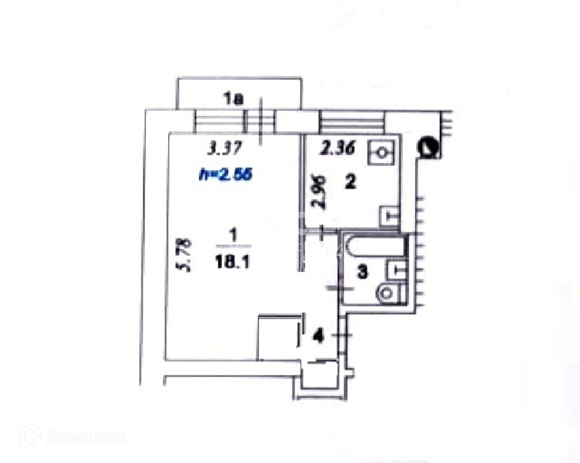 Балкон, лоджия 1 балкон