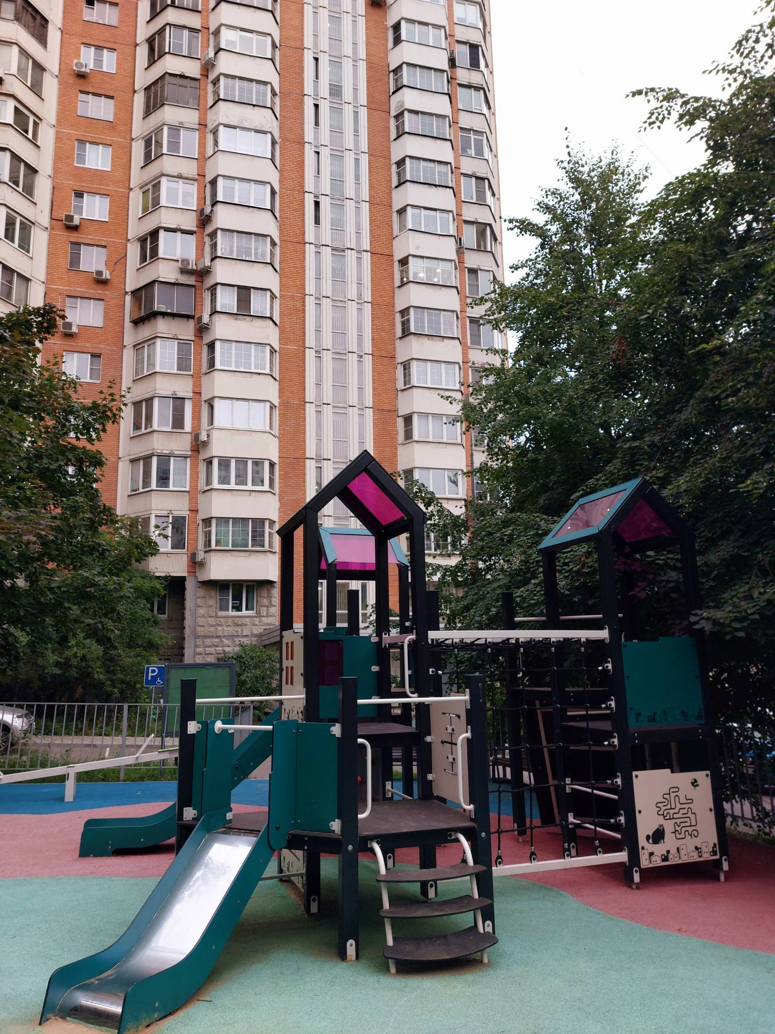 Во дворе две детских площадки, доступные парковочные места.