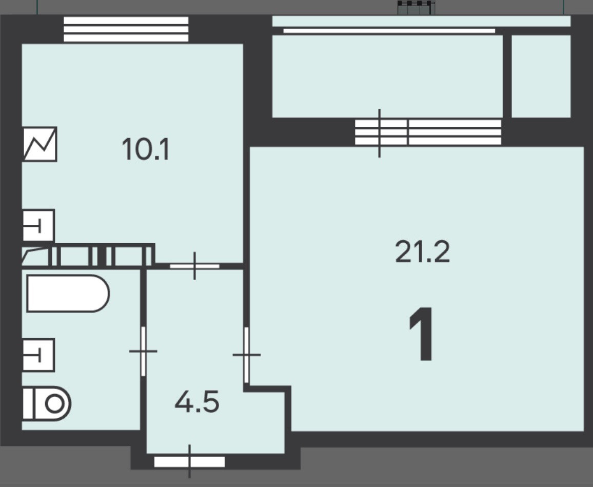 Общая площадь 43.5 м2