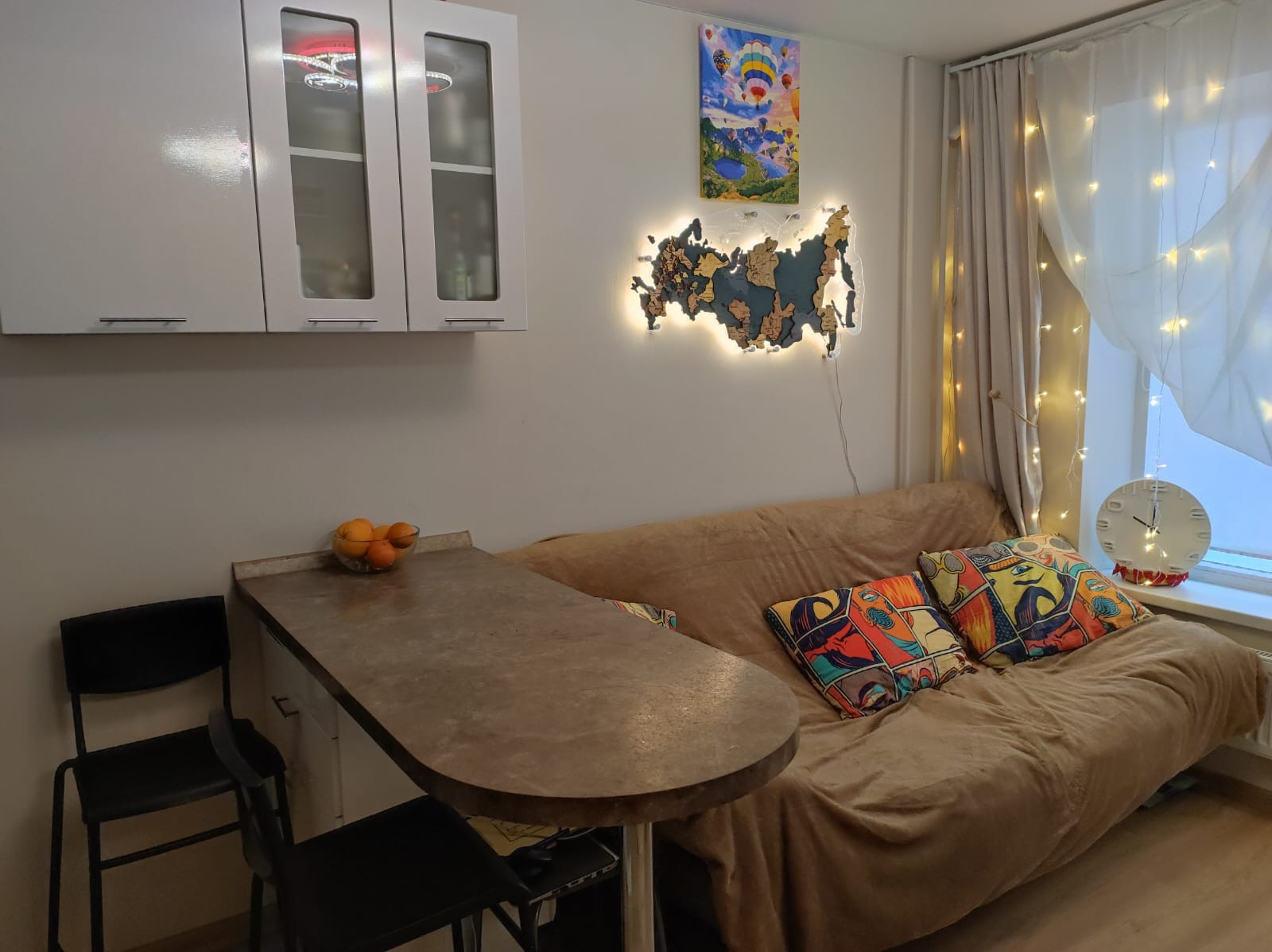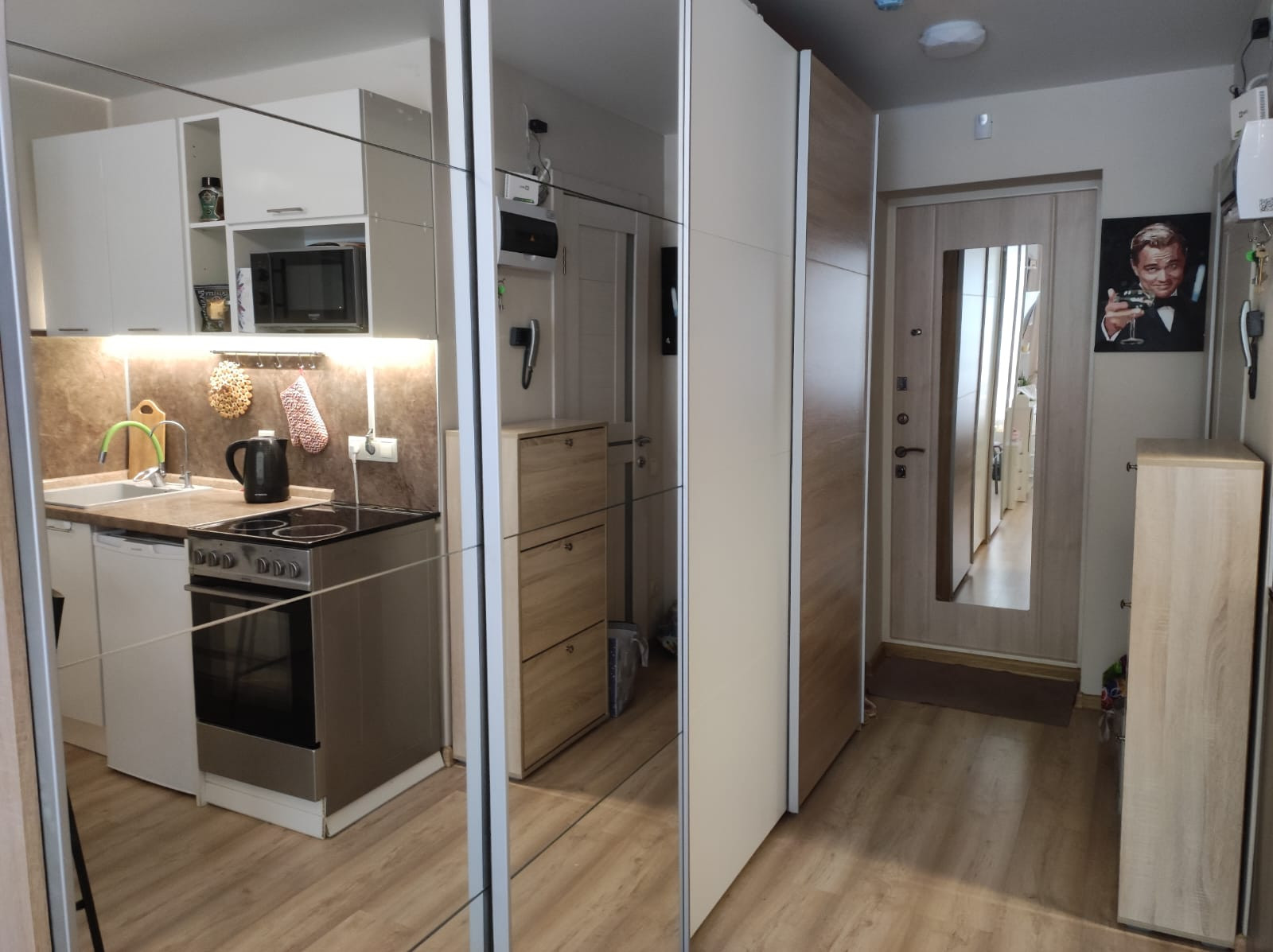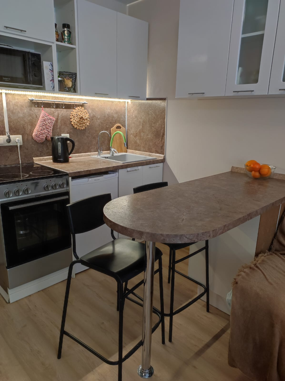 Студия  укомплектована техникой и мебелью для проживания: