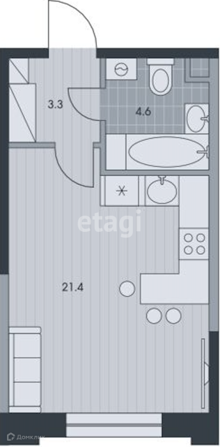 -Квартира студия, 29,3 м2, располагающаяся на 26 этаже в 3 корпусе первой очереди.