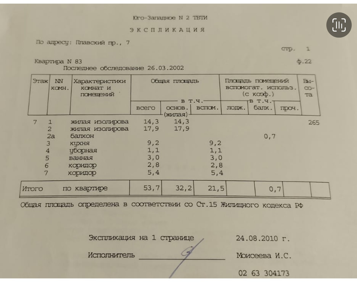 Общая площадь 53.7 м2