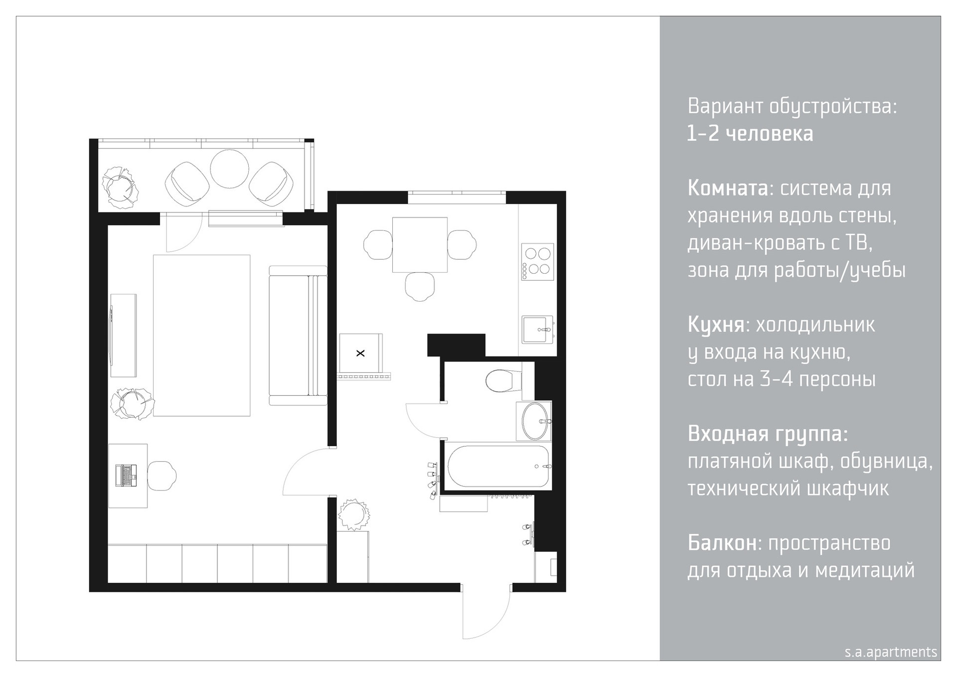 Общая площадь 42 м2