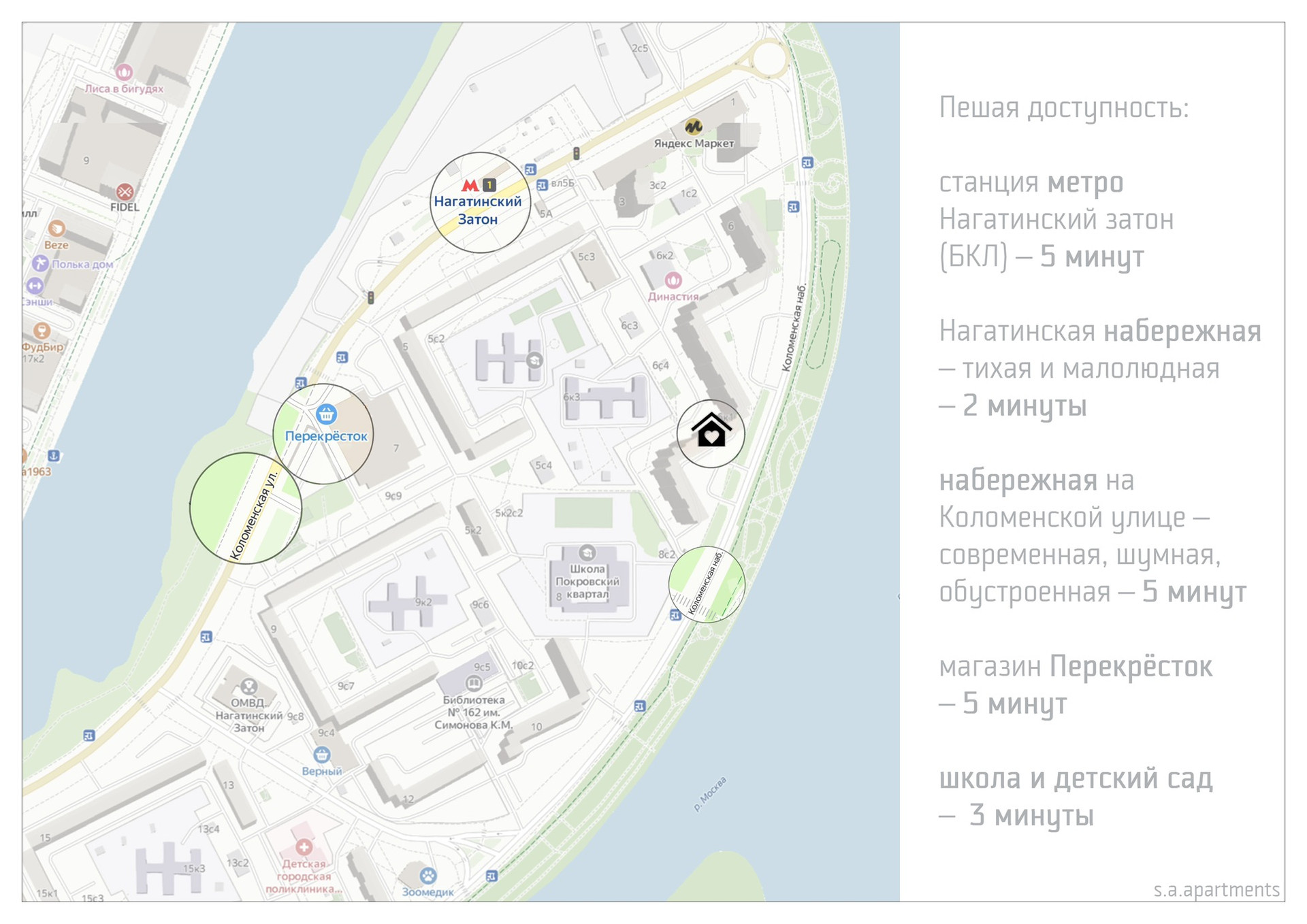 От подъезда до метро «Нагатинский затон» — 5 минут прогулочным шагом