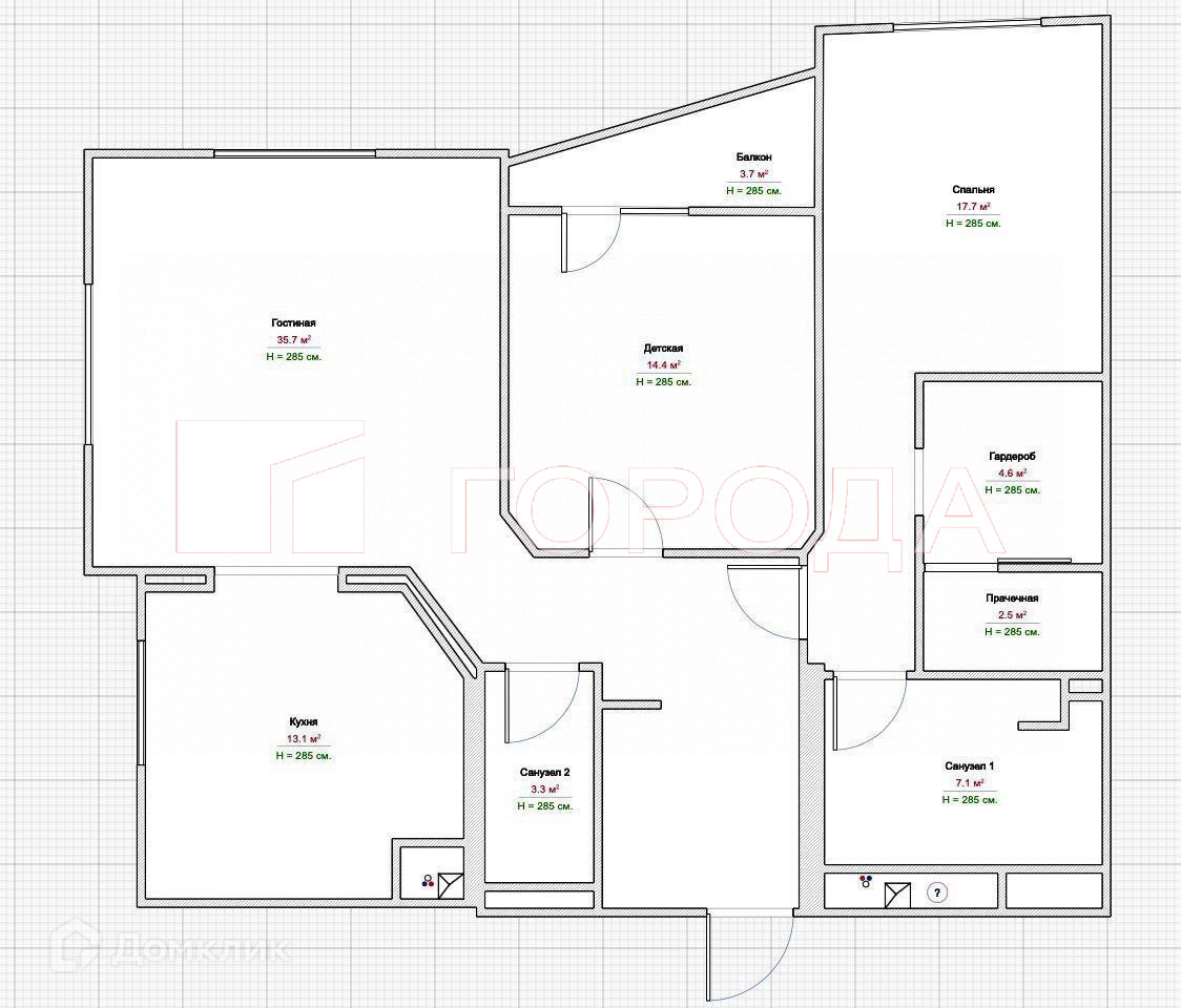 Высота потолков 2.85 м