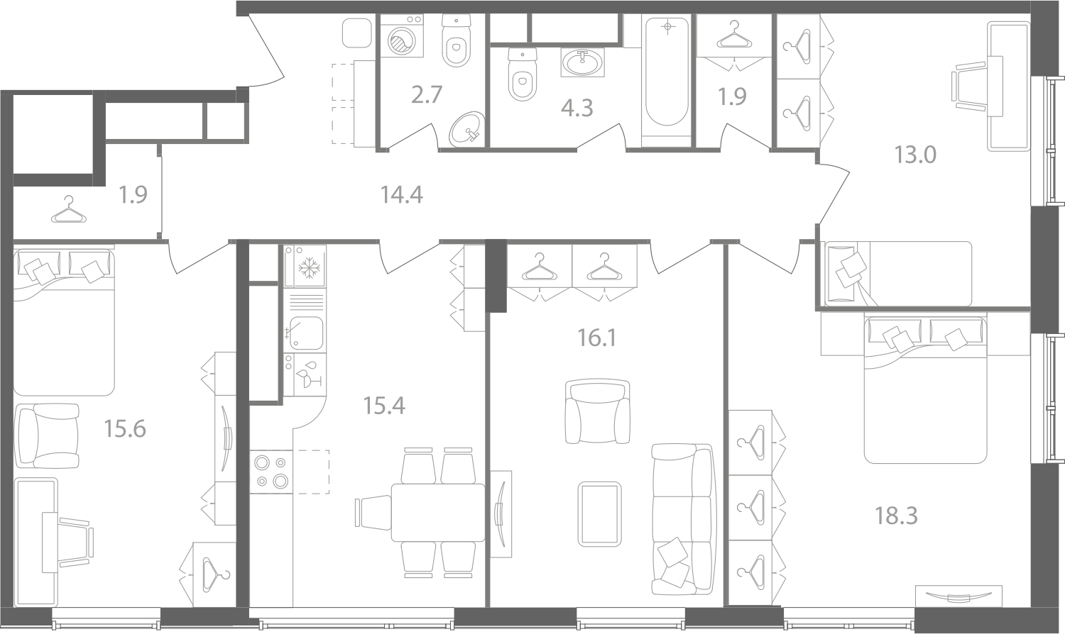Общая площадь 104.8 м2