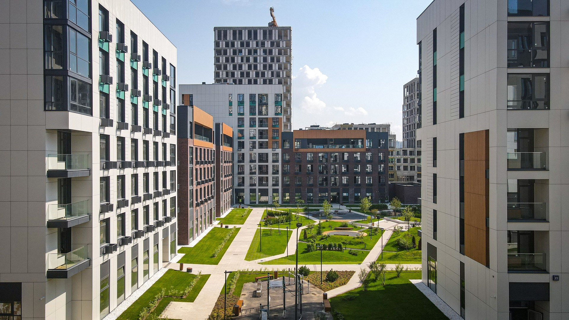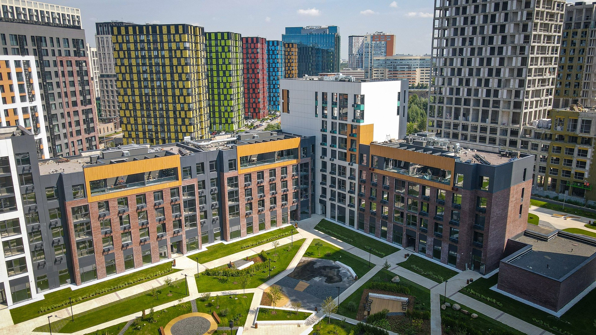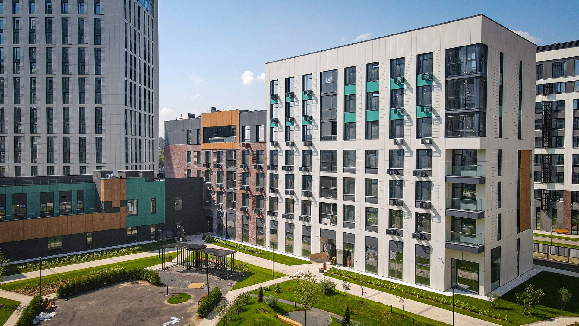 На территории квартала будут расположены дома разной высотности от 5 до 34 этажей, спортивные и досуговые объекты, различные бытовые услуги, офисные центры, а также современная школа на 825 мест и 4 детских сада.