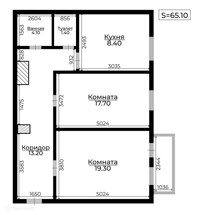 Общая площадь 65.1 м2