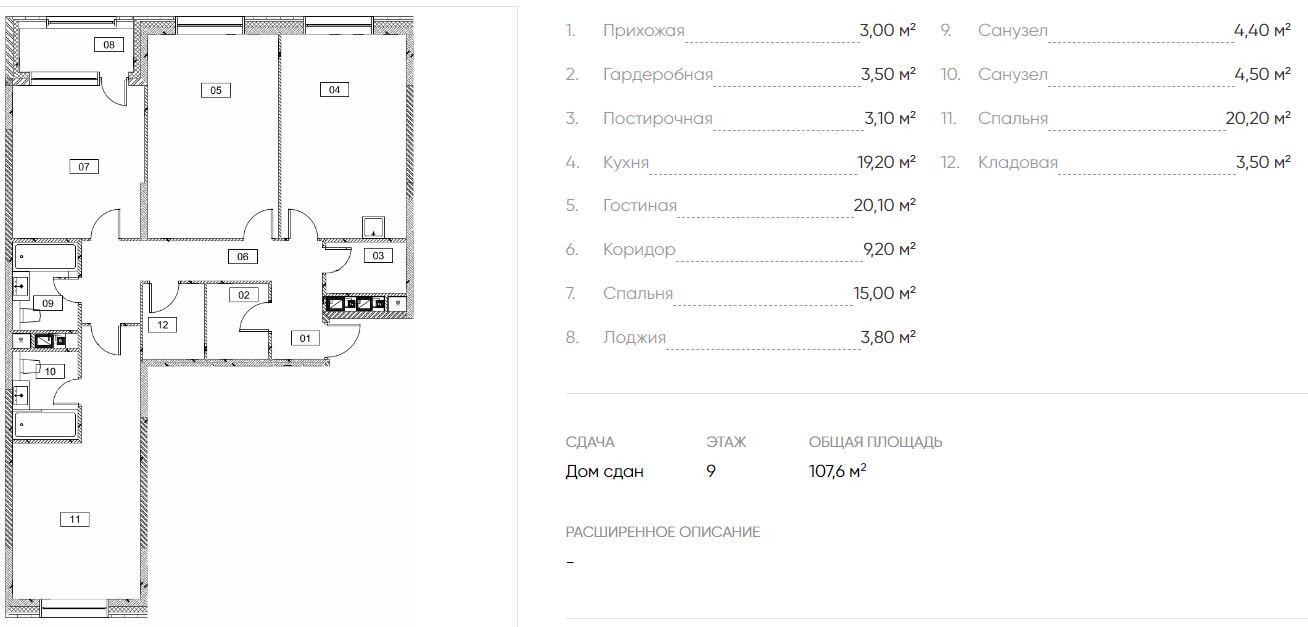 Общая площадь 107.6 м2