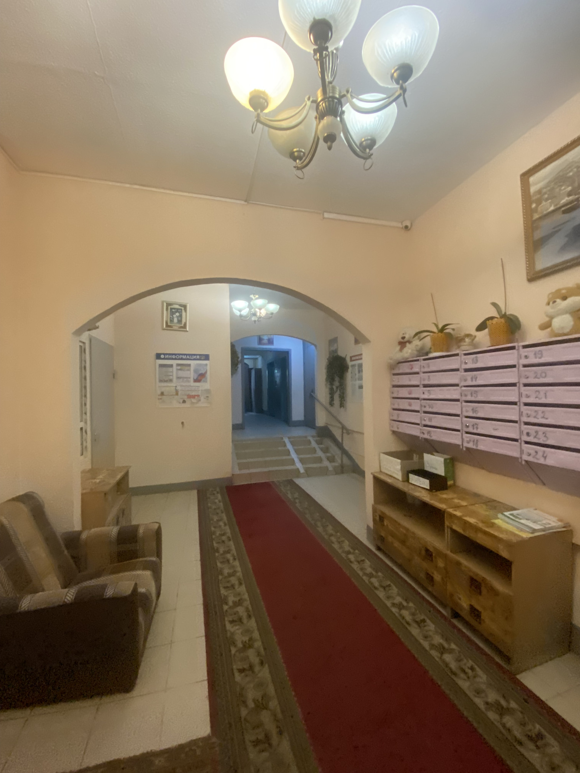 Квартира чистая . Стеклопакеты , лоджия застекленная , большой тамбур на 4 квартиры , консьержка, окна выходят на тихий зеленый двор .