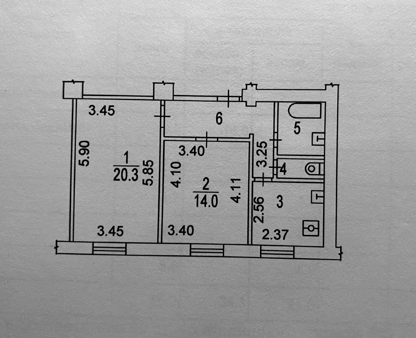 Общая площадь 56 м2