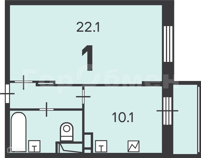 Жилая площадь 22.1 м2