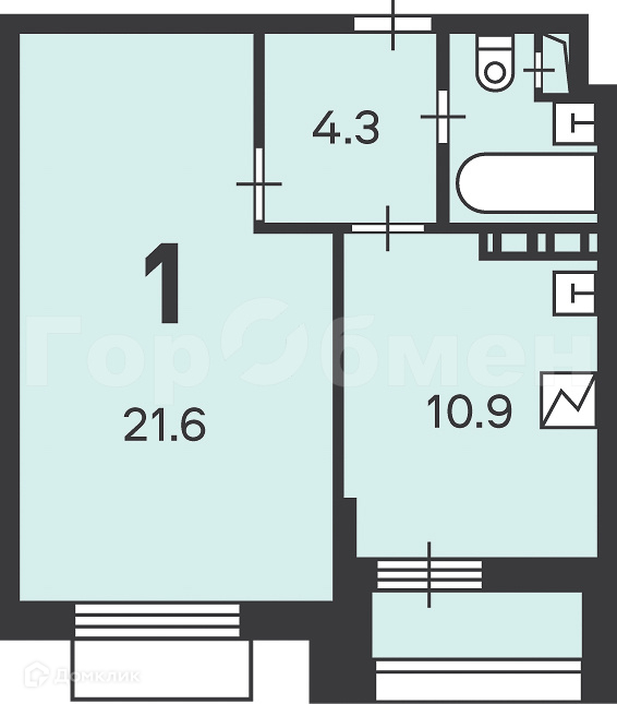 Жилая площадь 21.6 м2