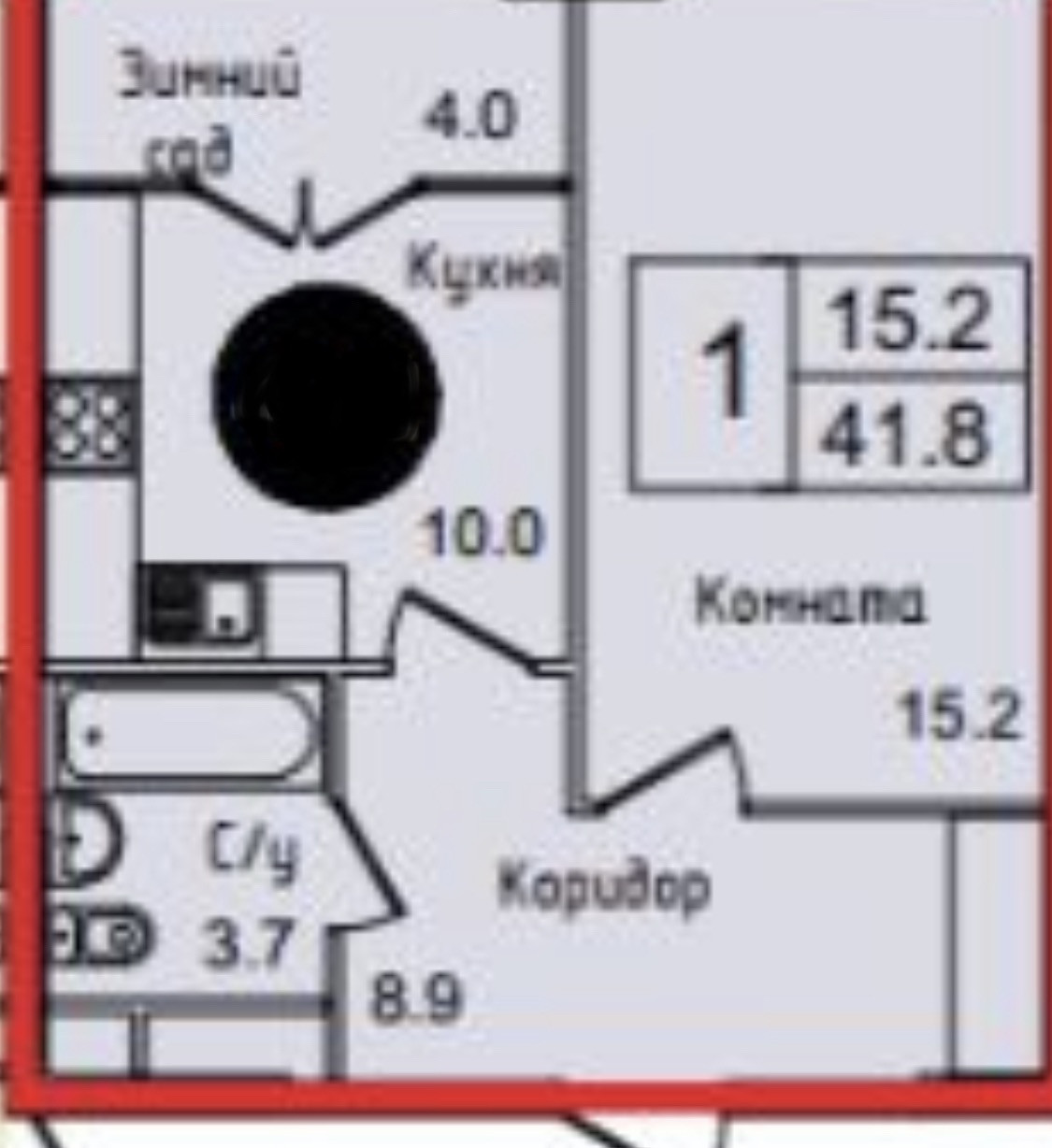 Общая площадь 41.7 м2