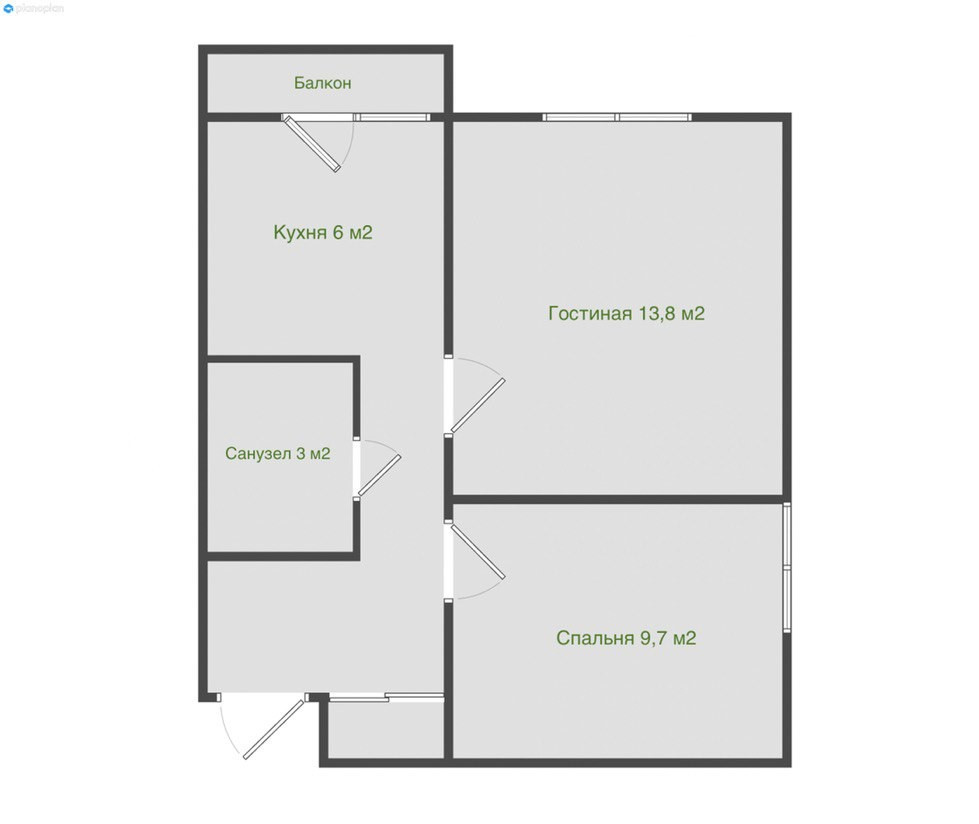 Общая площадь 38.3 м2