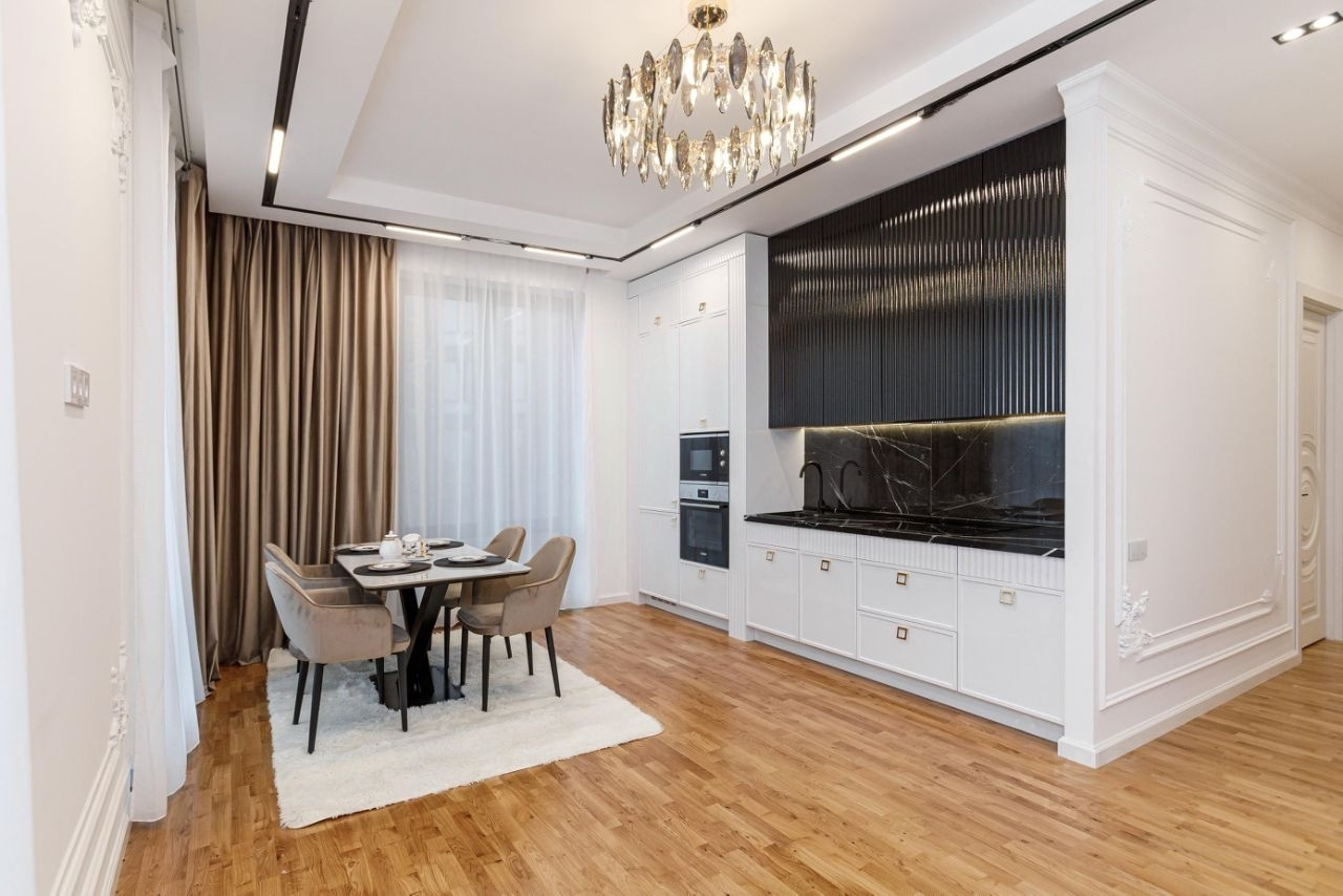 Выполнена новая отделка, установлена мебель и качественная бытовая техника, предусмотрены теплые полы и кондиционеры. Никто не жил!