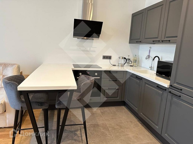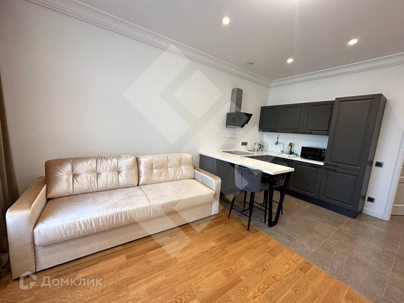 Квартира с ремонтом. Окна выходят на внешюю сторону ЖК, не на дорогу. Одна изолированная комната и просторная кухня-гостиная. Санузел совмещенный. Просторный коридор. Высокие потолки.Меблированная.