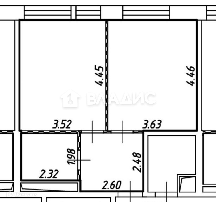 Общая площадь 43.1 м2