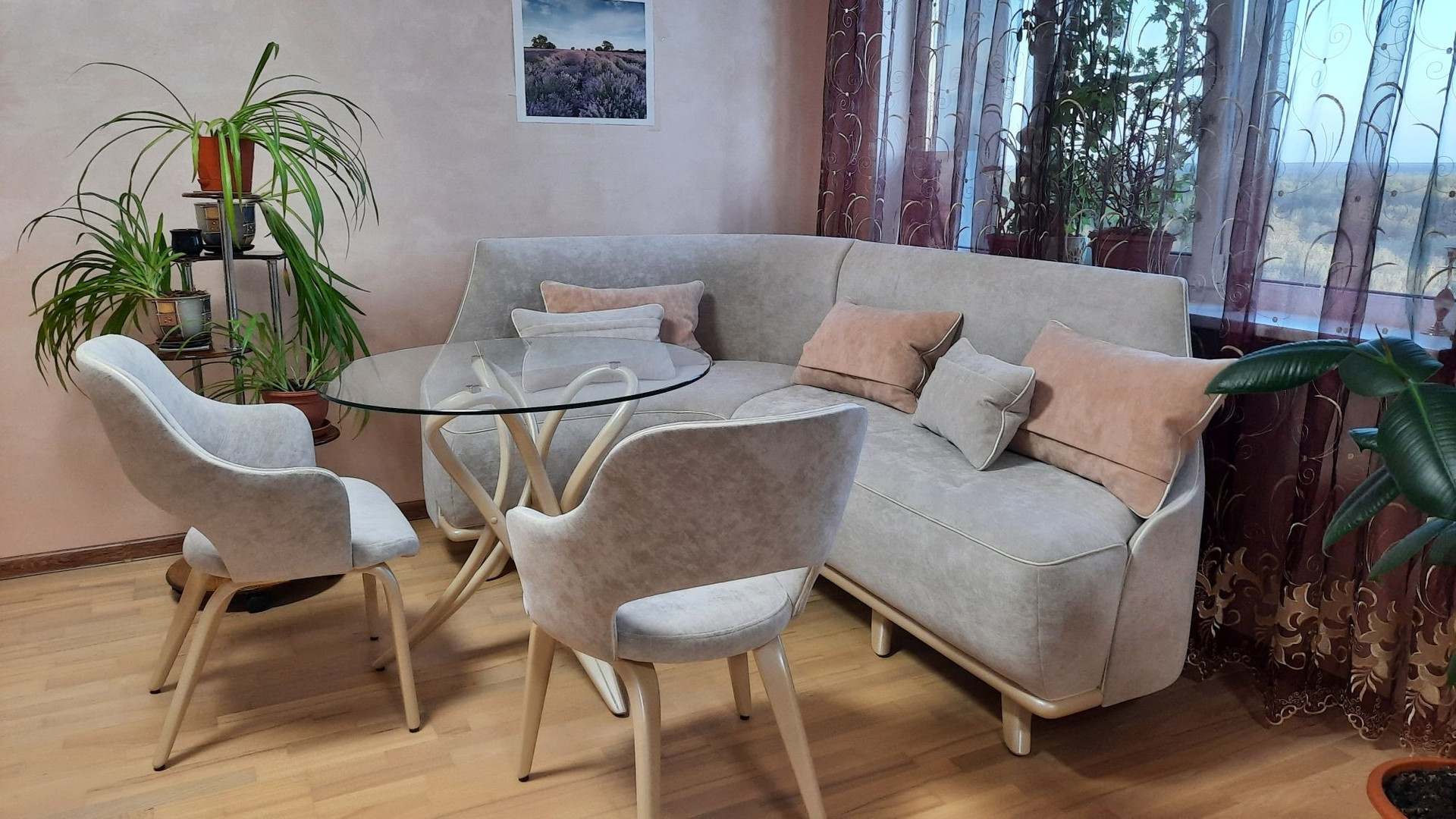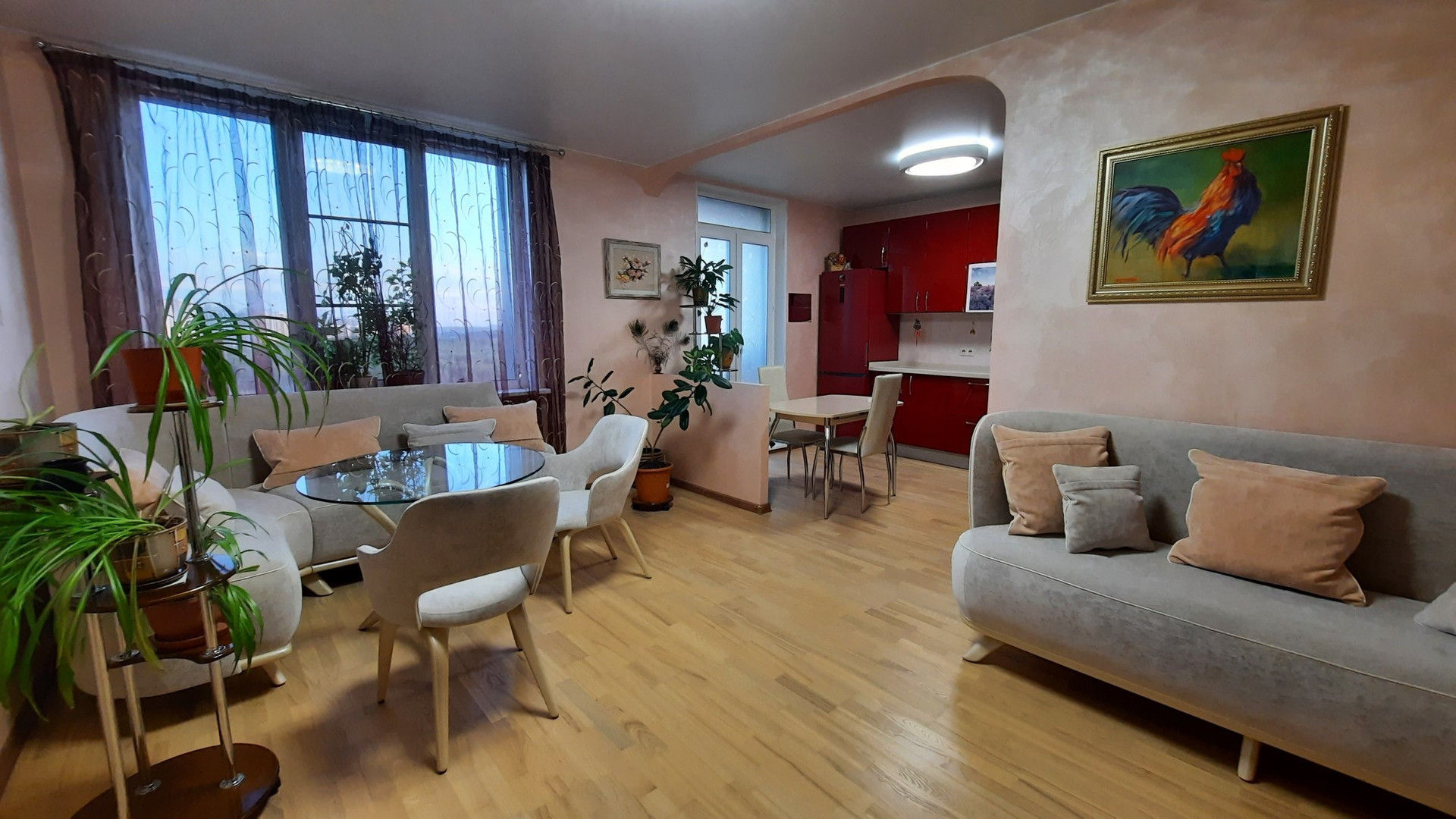 Стильная кухня "Мария" полностью укомплектована бытовой техникой от известных производителей, в коридоре во всю стену шкафа-купе, утеплённая и застеклённая лоджия.