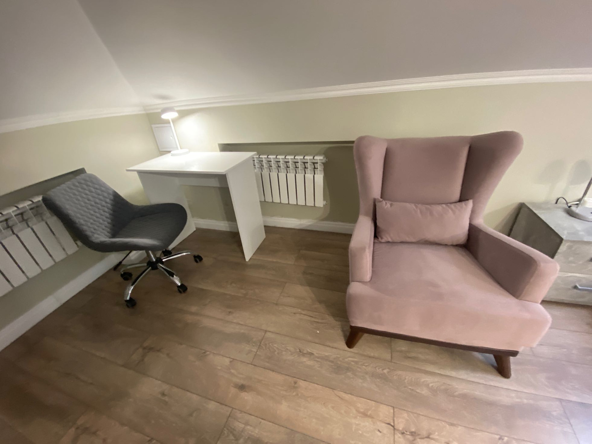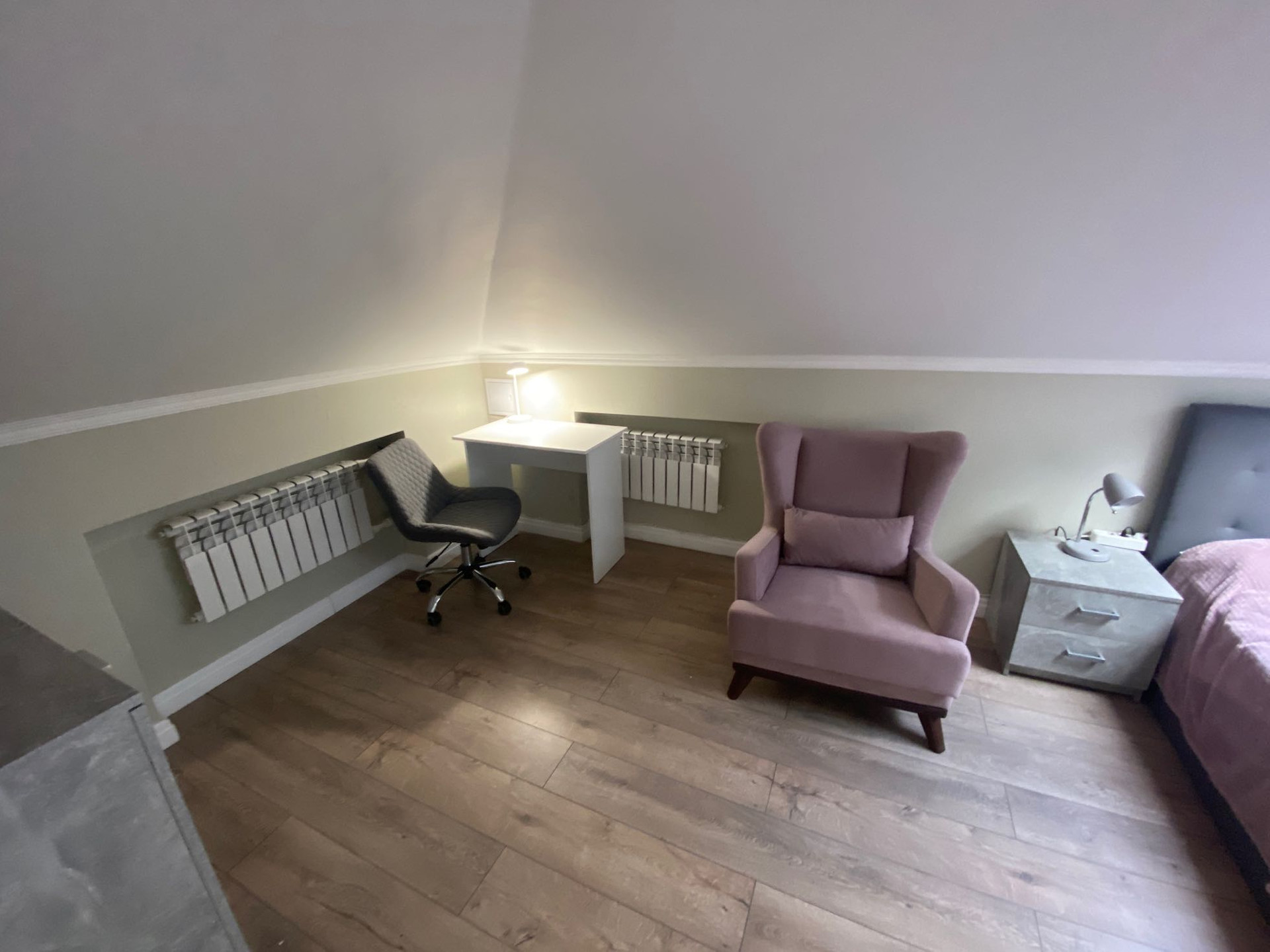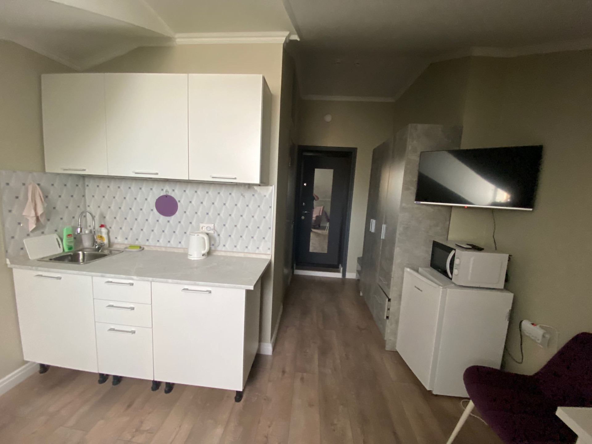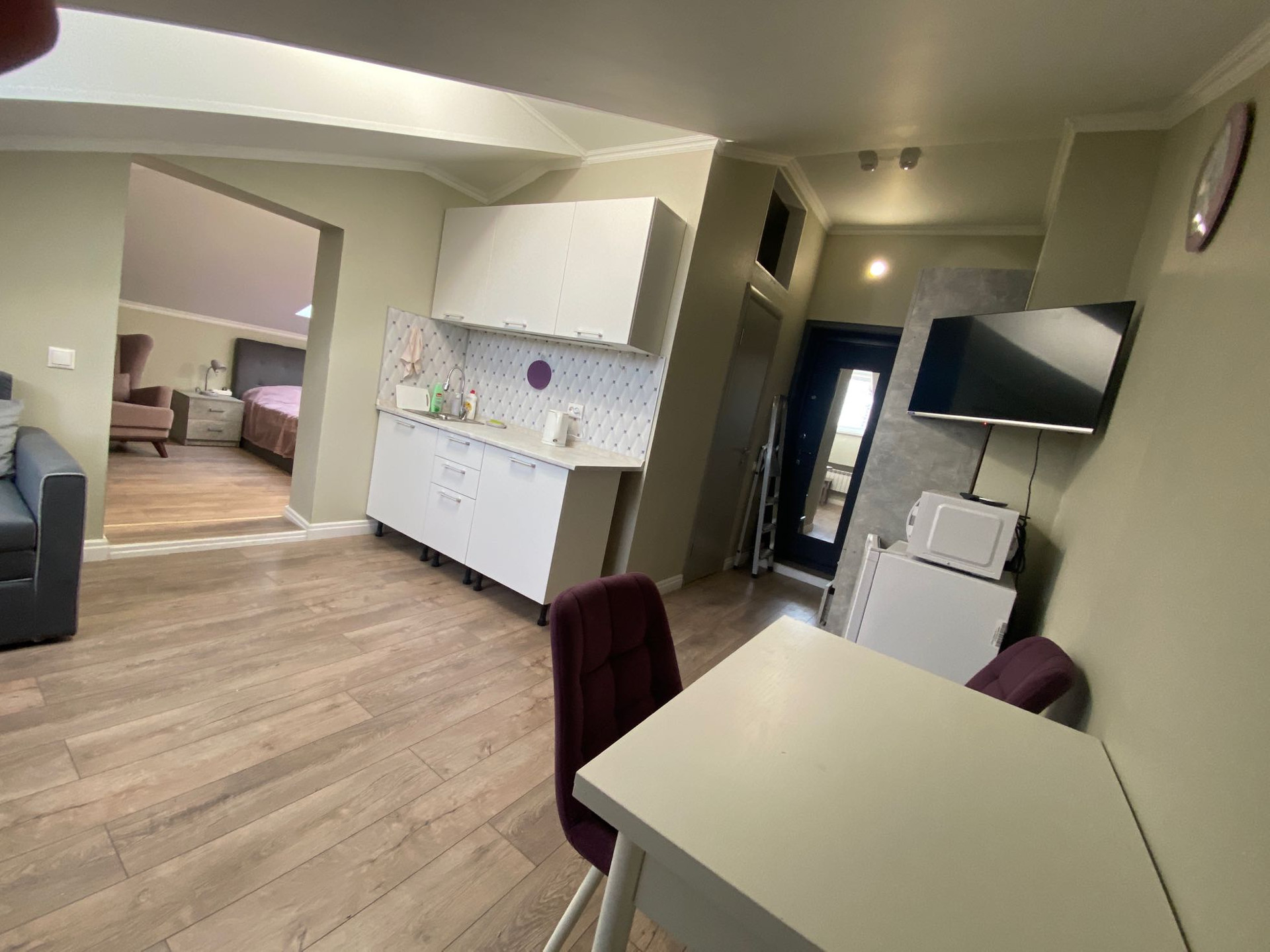 Двухкомнатные аппартаменты 32.2 м, на мансардном этаже, полностью готовые к проживанию, все новое. Соседи - только через одну стенку, тихо и спокойно. Кондиционер добавляет уюта.