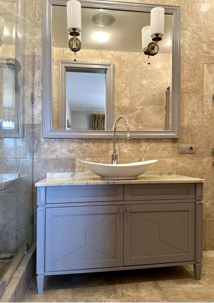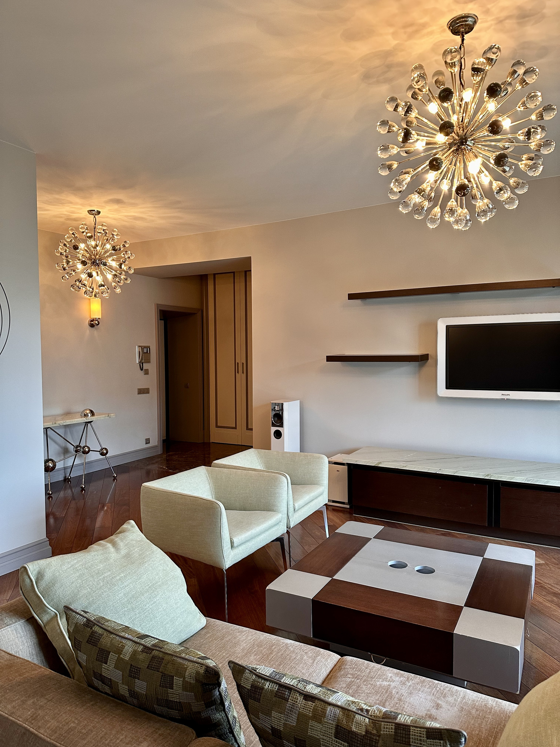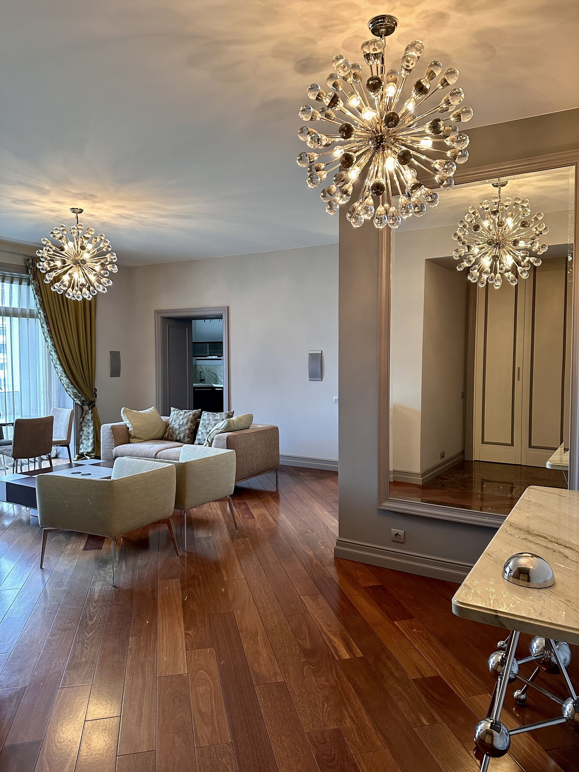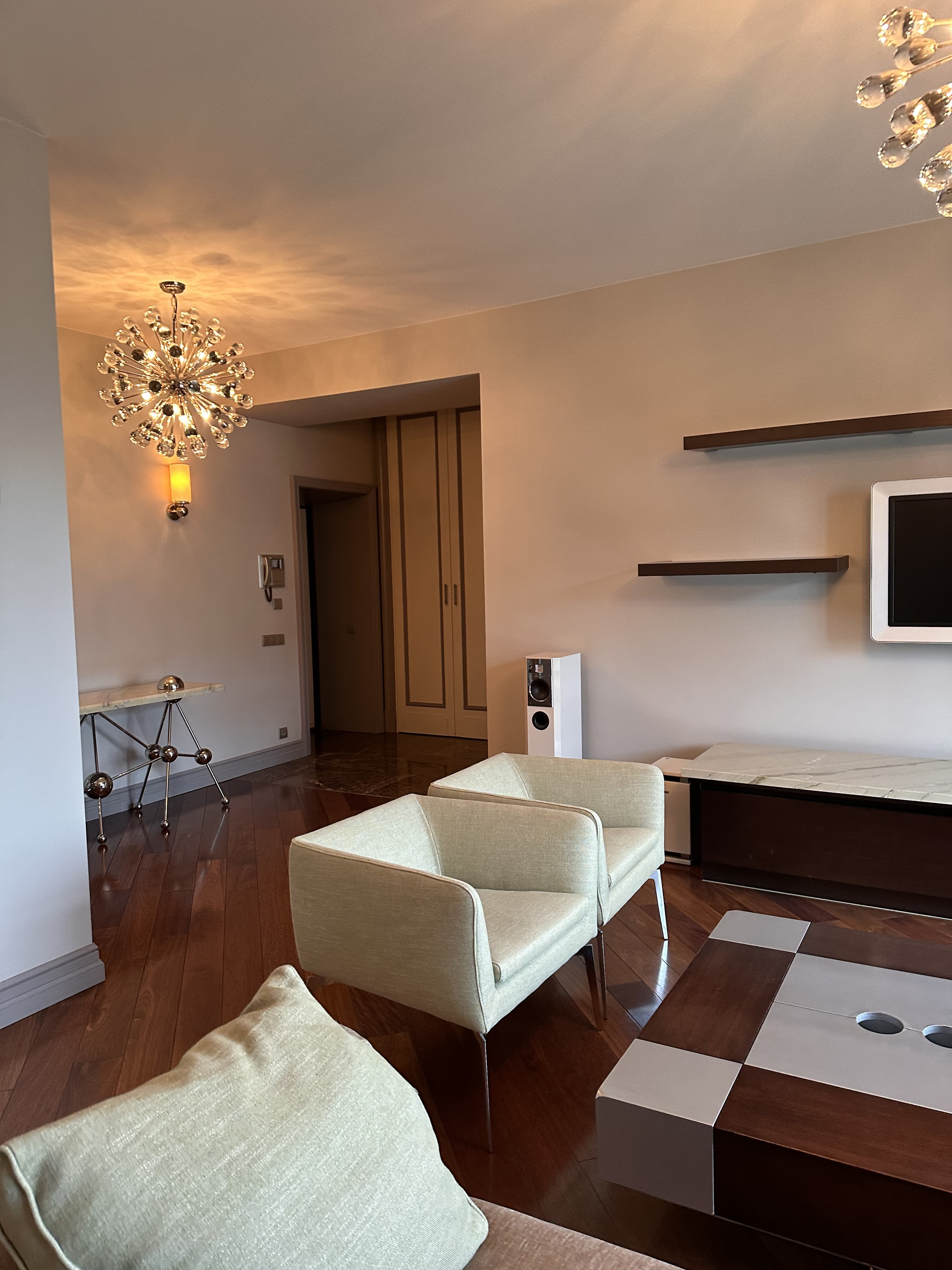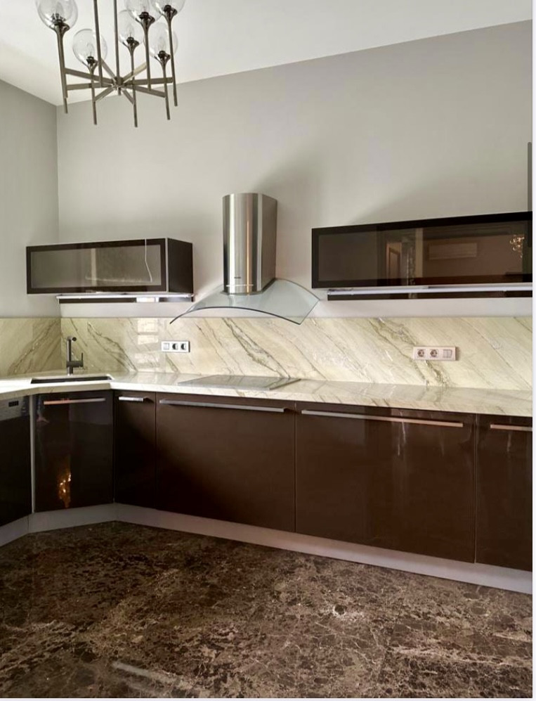 В квартире использовались только натуральные материалы: мрамор, паркет.