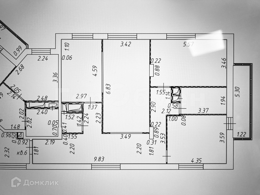 Жилая площадь 57.4 м2