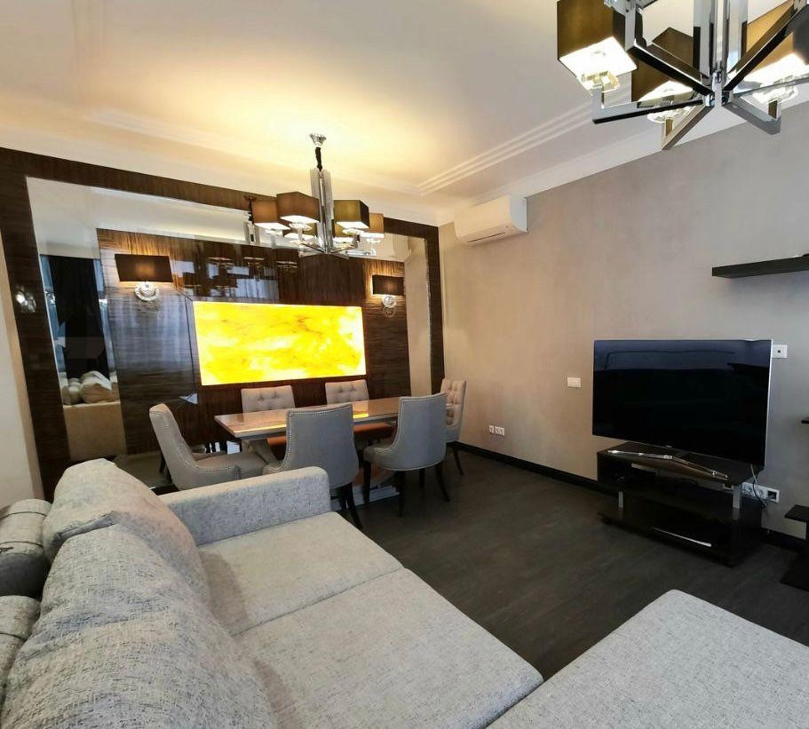 ЖК Маршал, ул. Маршала Рыбалко, д.2 корп. 3. Вашему вниманию предлагается 3-х комн. изысканная квартира на 8 этаже в респектабельном доме бизнес-класса со всей мебелью и техникой под ключ. Квартира расположена в престижном Северо-Западном районе столицы, в пешей близости от станции метро Октябрьское поле, Панфиловская. Светлая уютная квартира с великолепным дизайнерским ремонтом от известного архитектора, который дополнен прекрасной мебелью на заказ, освещением из Италии, на полу качественная натуральная паркетная доска. Квартиру делали для себя с большой любовью, ремонт выполнен в едином стиле с использованием качественных отделочных материалов, укомплектована бытовой техникой премиального класса. Помещения квартиры состоят из просторной кухни-гостиной, спальни, детской (гостевой), 2 с/у с душевой кабиной и просторной ванной, постирочной.