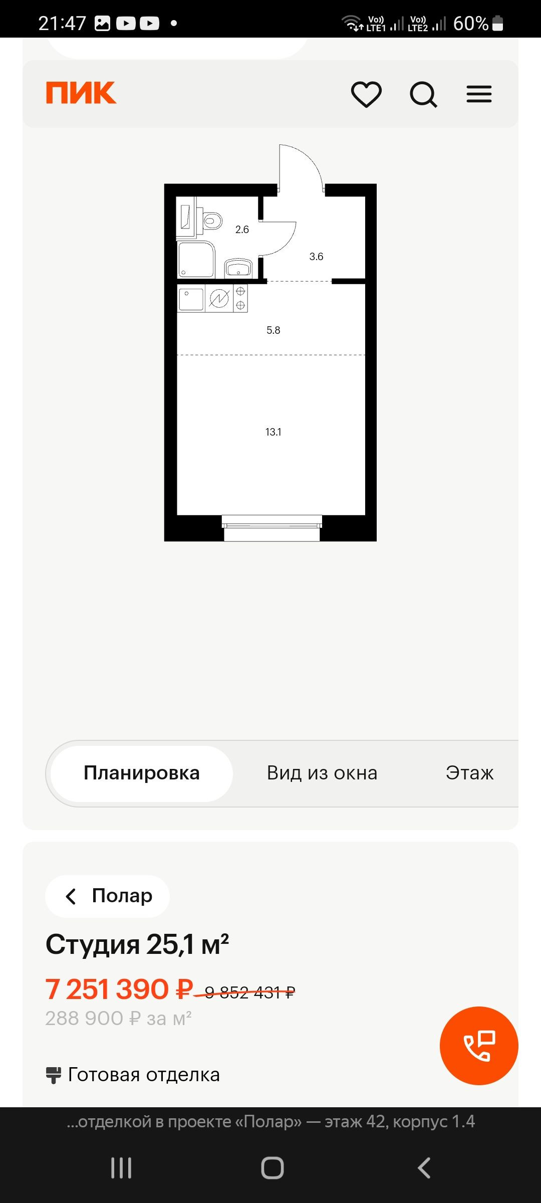 ЖК Полар, небоскрёб от Пик+ новый комфортный комплекс с шикарными видами. Собственник. Продажа с дисконтом 252 тысячи рублей от цены застройщика, монолитный небоскрёб комфорт + класса с шикарным видом на город с 41 первого этажа (всего 45 этажей в доме) подходит под Семейную ипотеку и IT-ипотеку. Квартира с ремонтом и улучшенной отделкой. Самая видовая квартира в доме на город в другую сторону от МКАД впереди стоящие здание 31 этаж, по этому вид не закрывается! Таких квартир в доме с хорошим видом всего несколько штук.