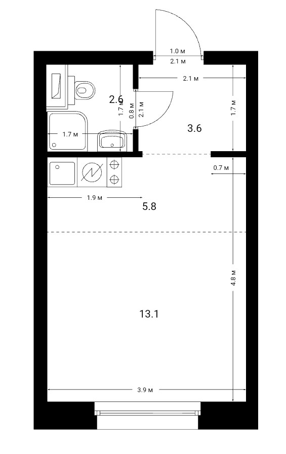 Жилая площадь 13.1 м2