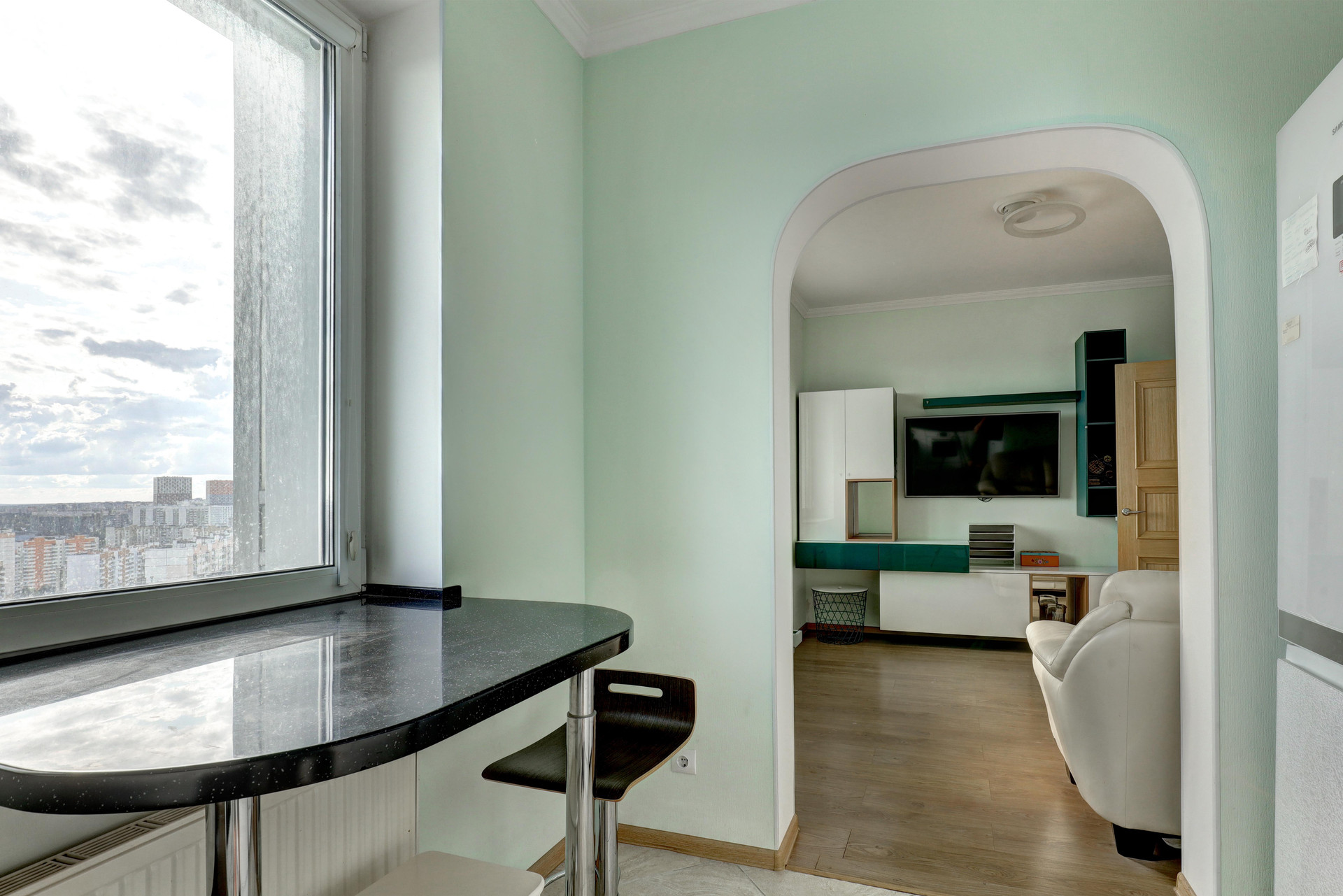 Современная, светлая,  уютная квартира в ЖК LIFE-Митинская.  Высокие потолки. функциональное пространство, качественный ремонт. Лоджия с панорамным остеклением и прекрасным видом.