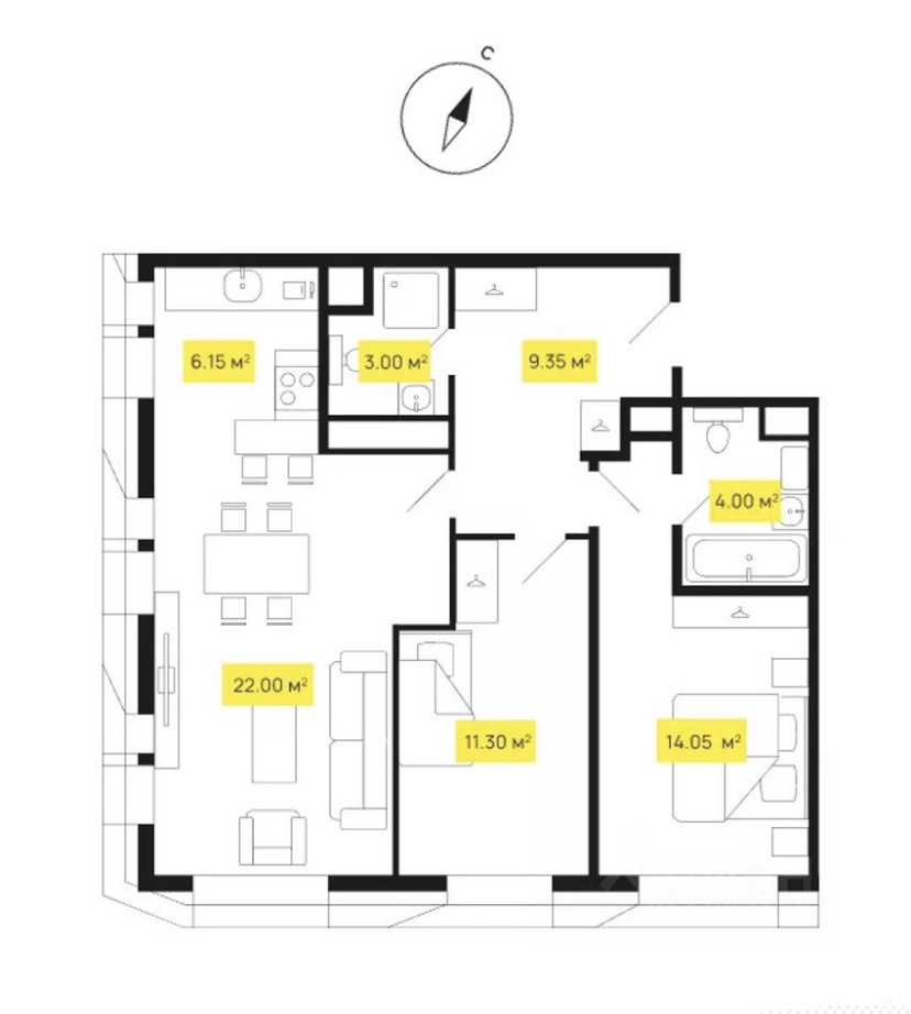 Общая площадь 69 м2