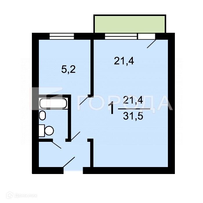 Общая площадь 31.5 м2