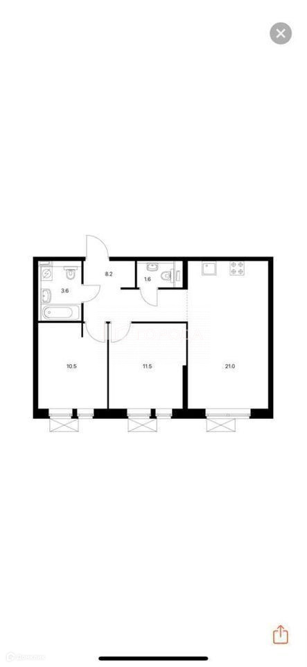 Общая площадь 56.4 м2