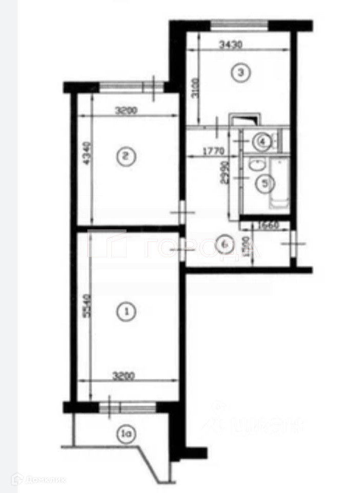 Жилая площадь 33.7 м2